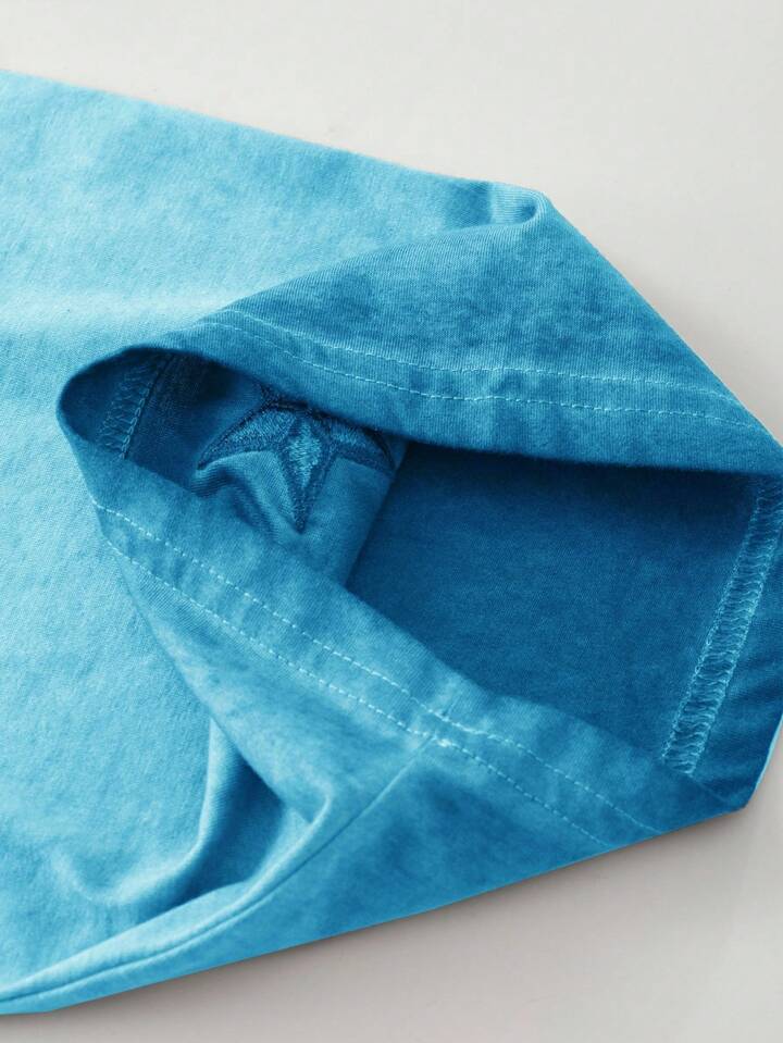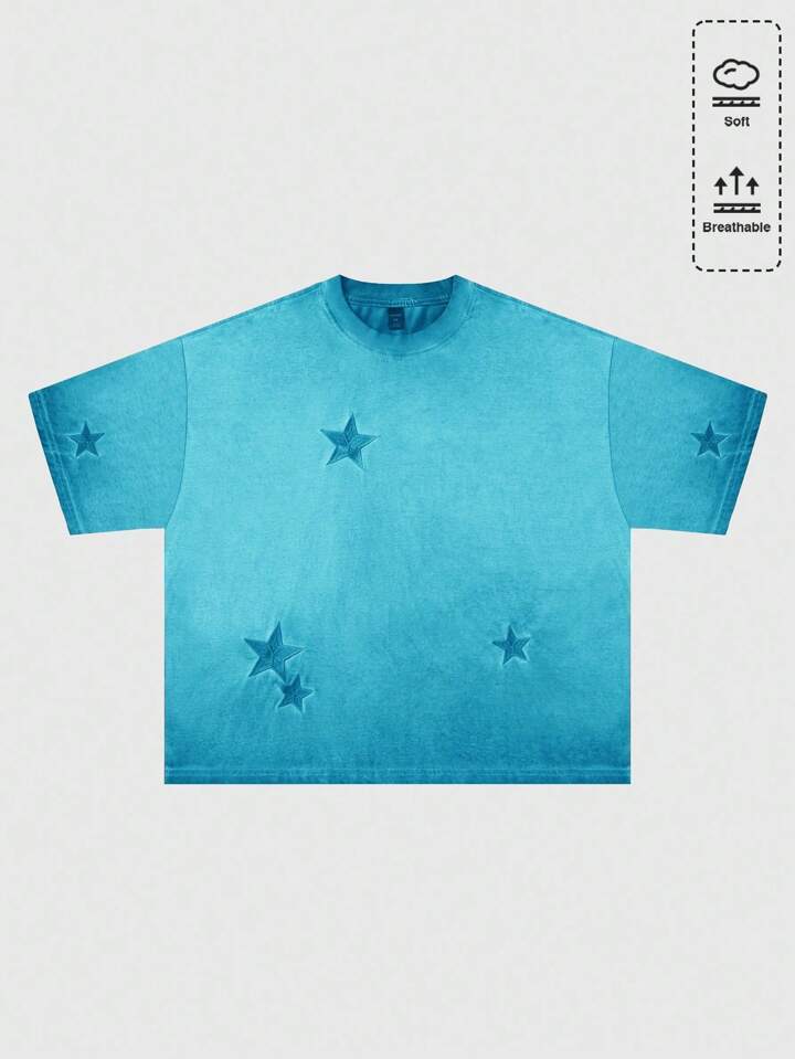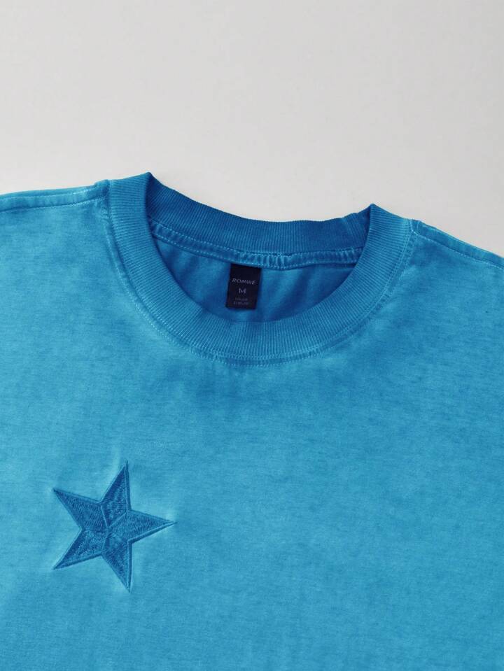 Street Life Maglietta casual da uomo a girocollo, con ricamo a stella, lavata, ampia, per l'estate