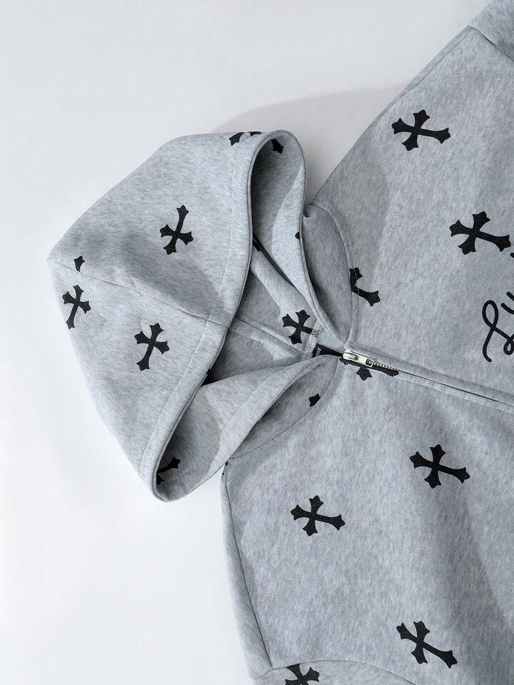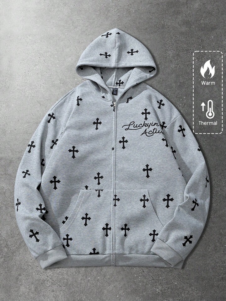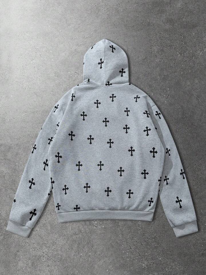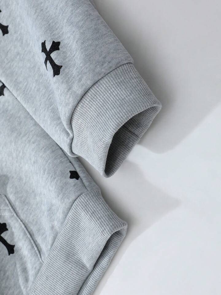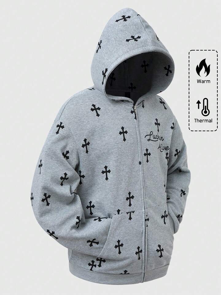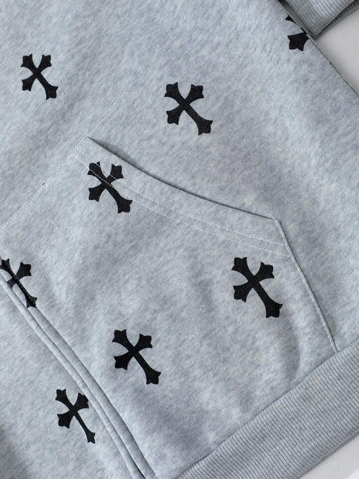 Street Life Felpa con cappuccio casual da uomo con stampa a croce, autunno/inverno