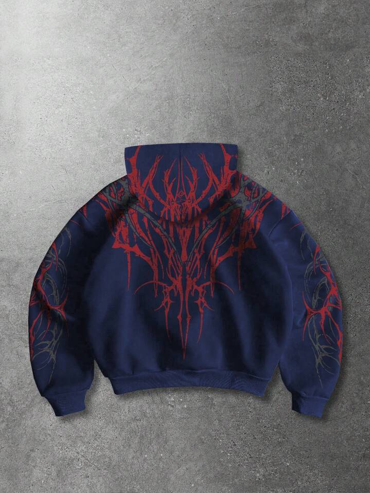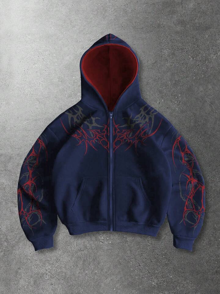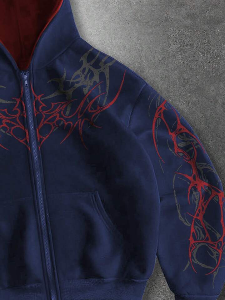 Street Life Felpa con cappuccio e chiusura lampo casual da uomo con stampa grafica, autunnale