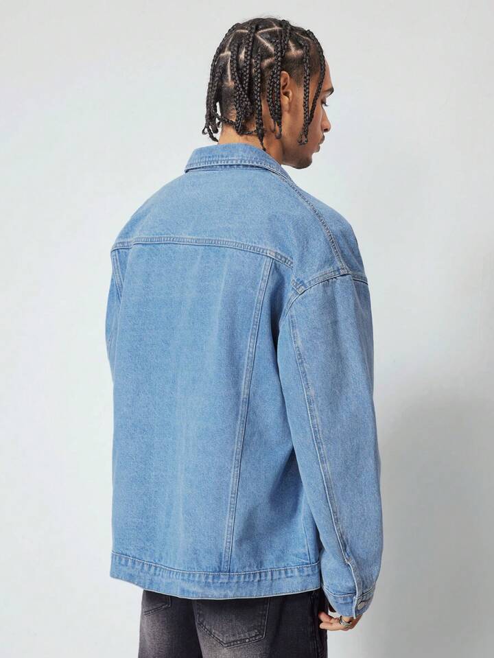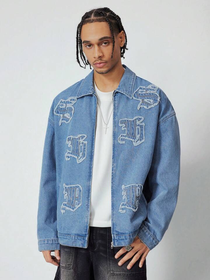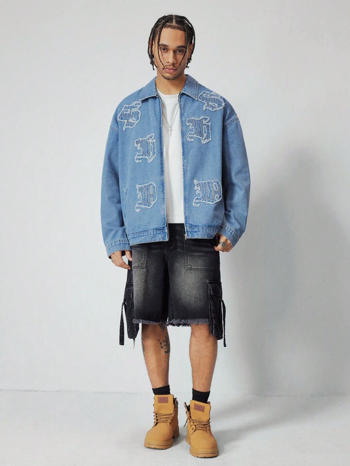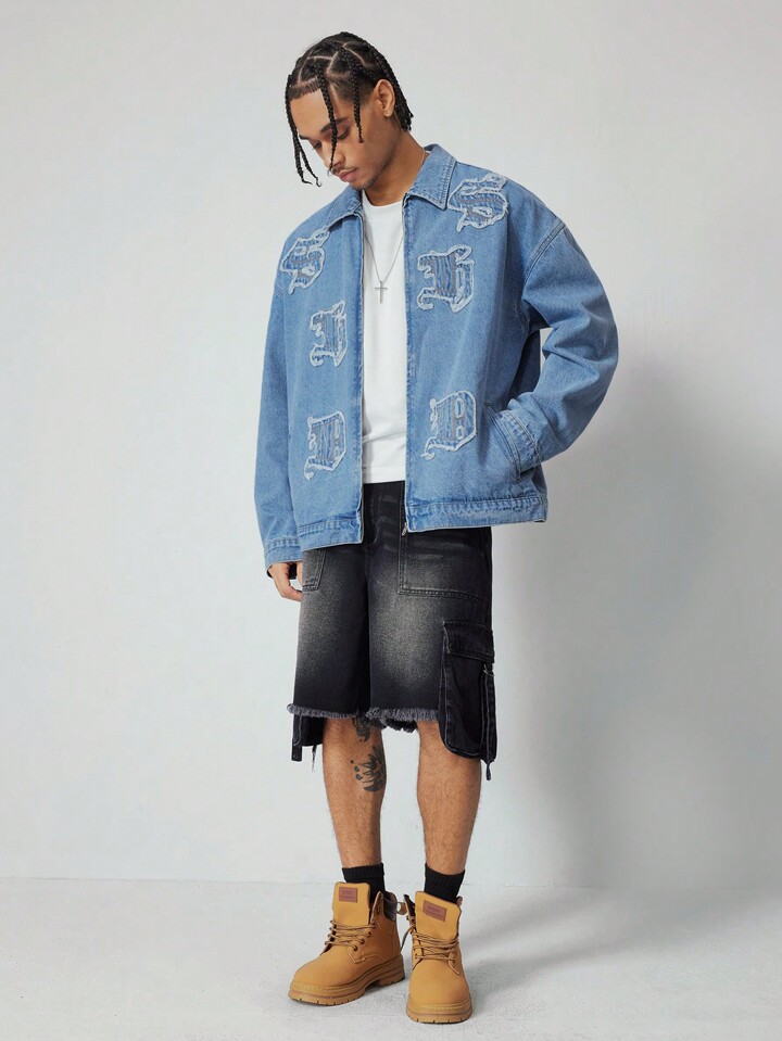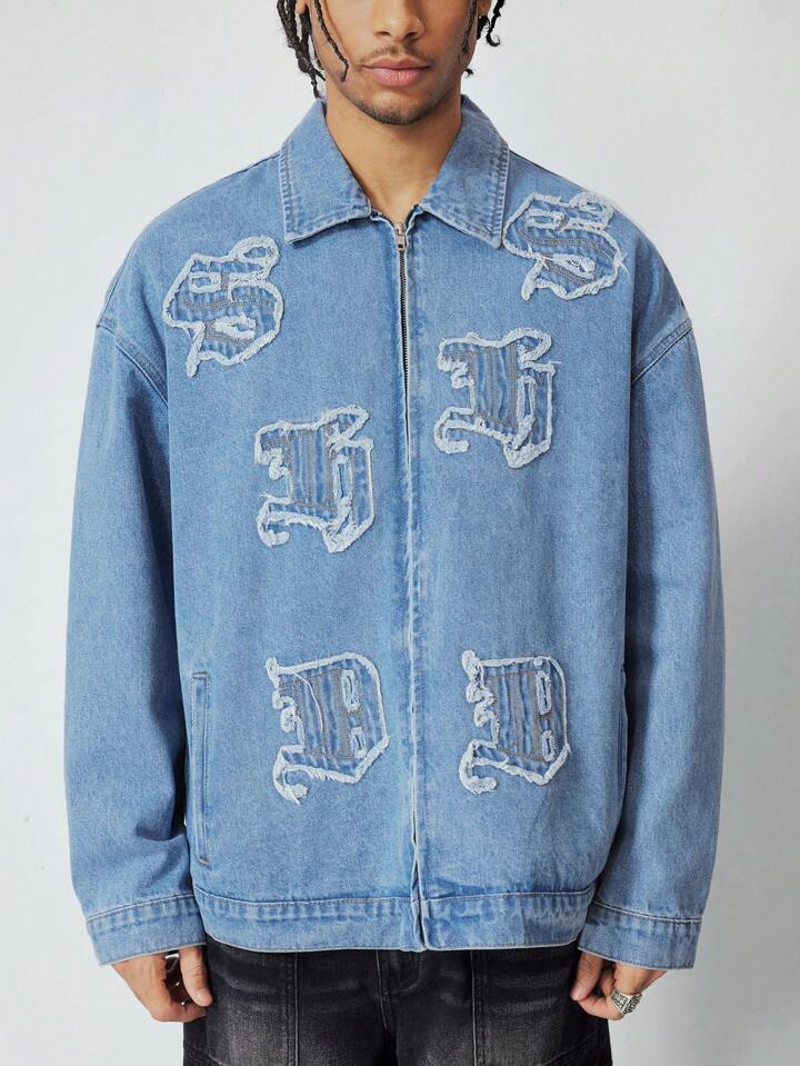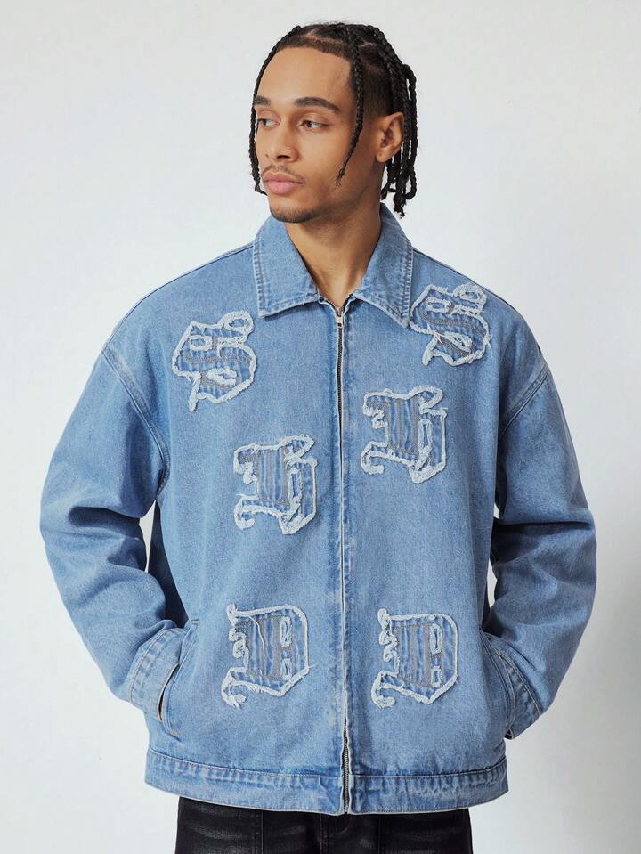 Street Life Giacca di jeans casual da uomo con applicazioni di lettere, adatta per l'autunno
