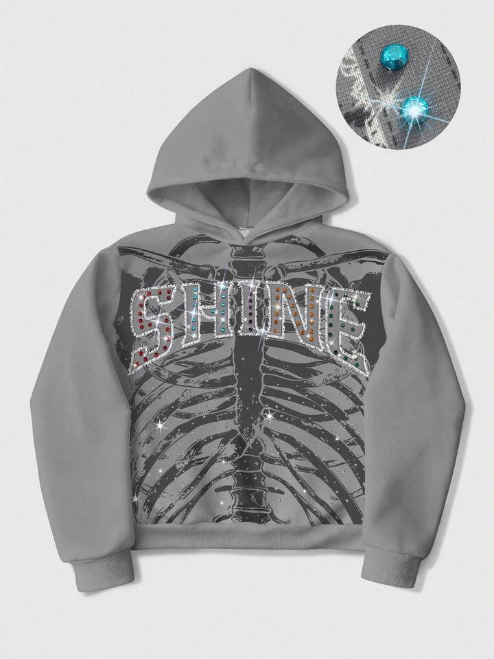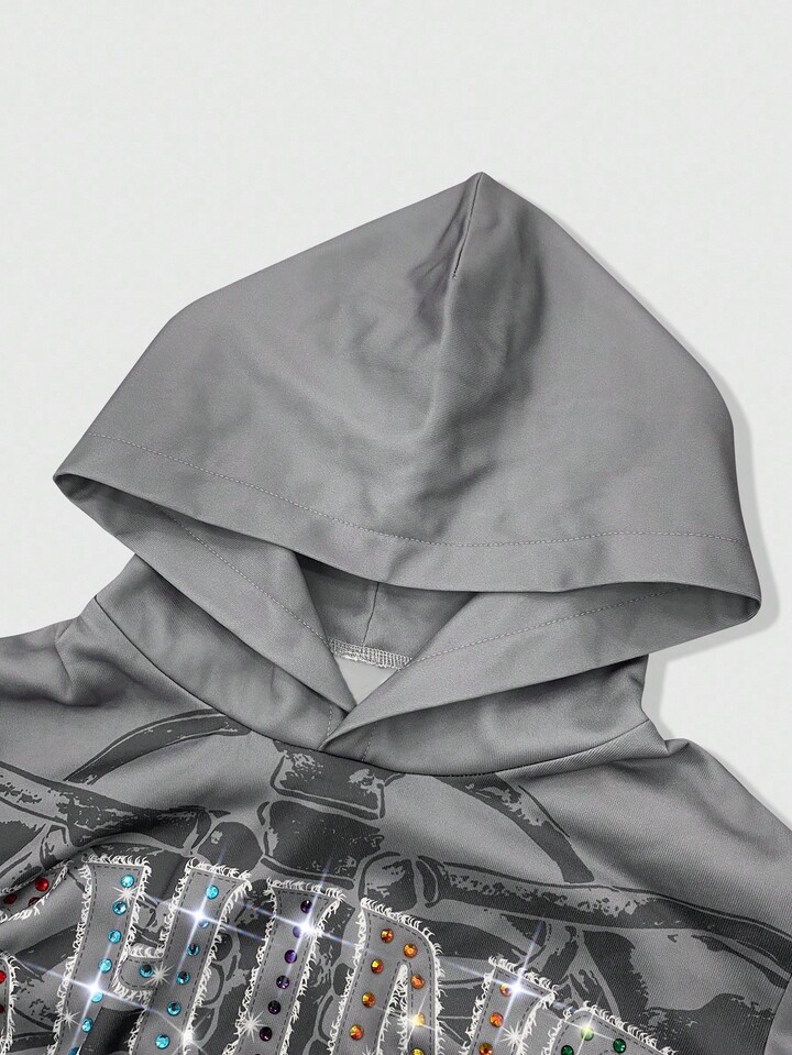 Street Life Felpa con cappuccio casual da uomo, con stampa di teschi e motivi, vestibilità ampia, autunnale