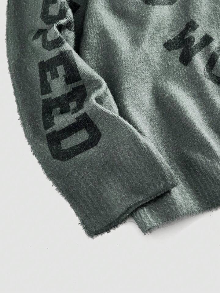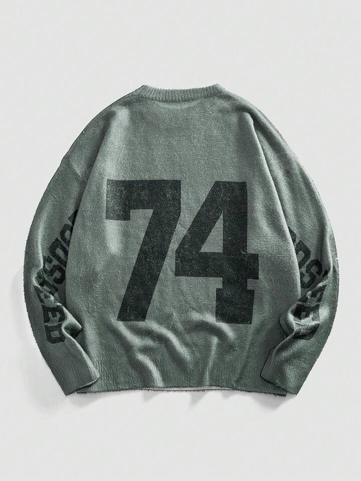 Street Life Maglione casual da uomo a spalle cadenti con motivo 1776 lavorato a maglia