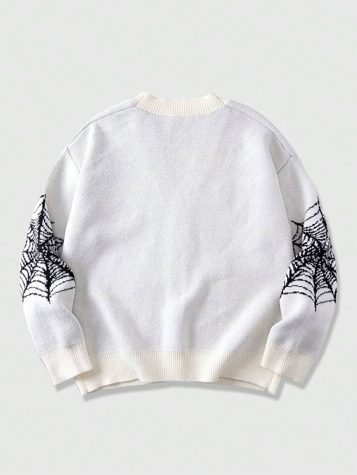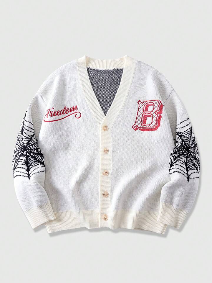 Street Life Cardigan casual da uomo con scollo a V, bottoni, motivo a ragnatela e lettera, stile urban, adatto per autunno/inverno
