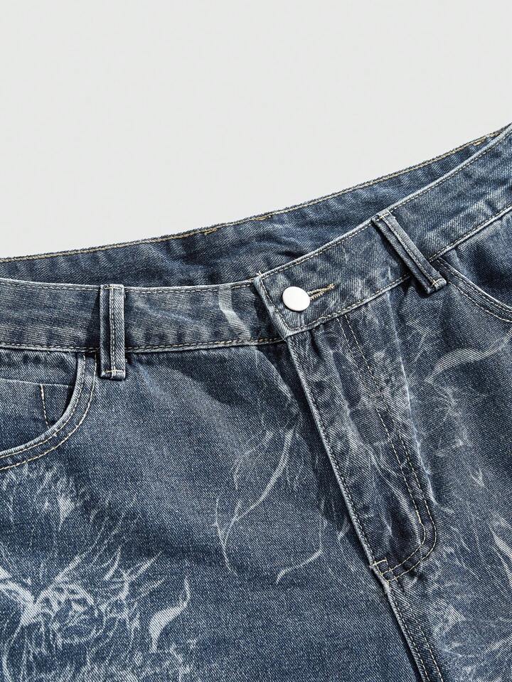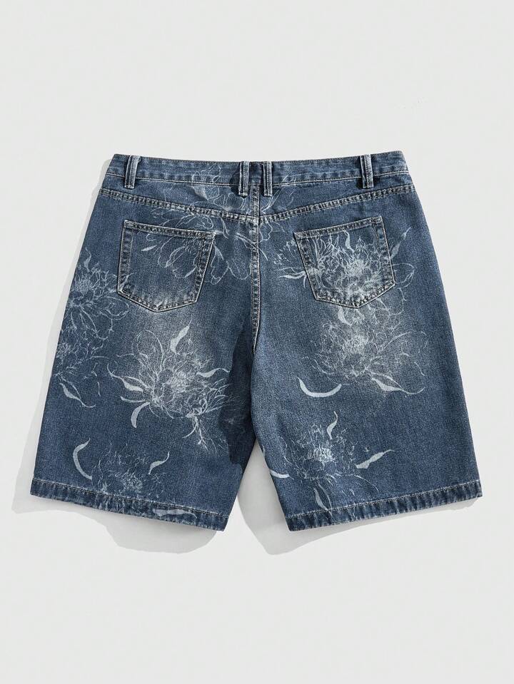Street Life Pantaloncini di jeans casual da uomo a gamba dritta con stampa floreale