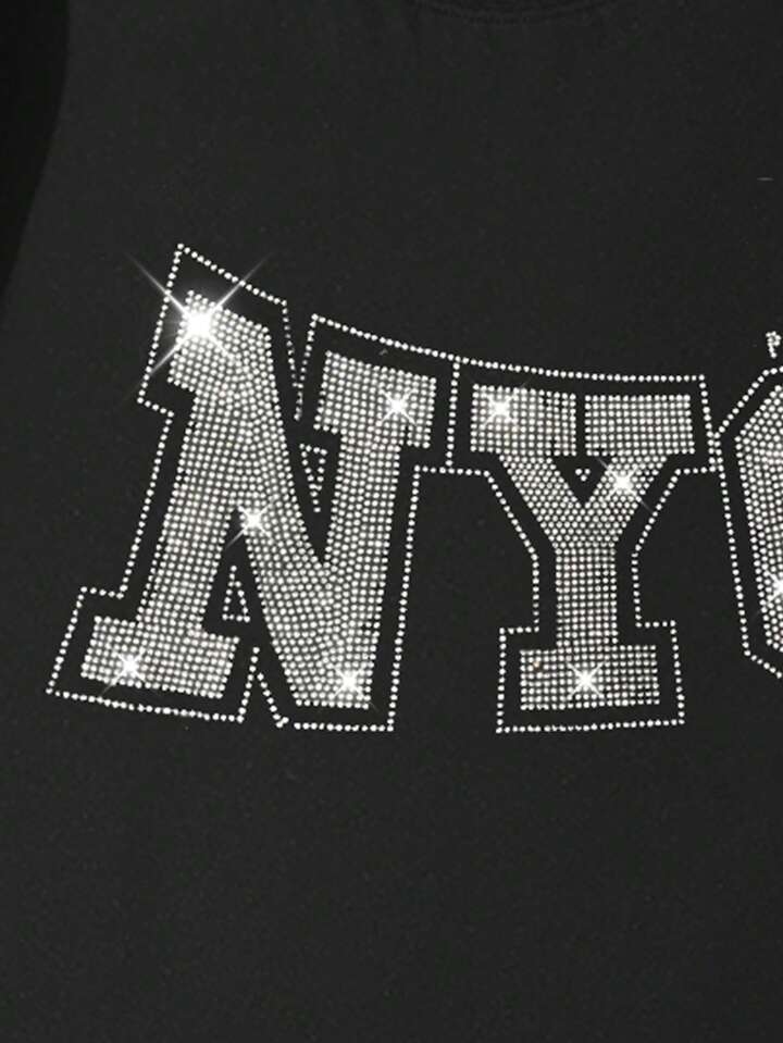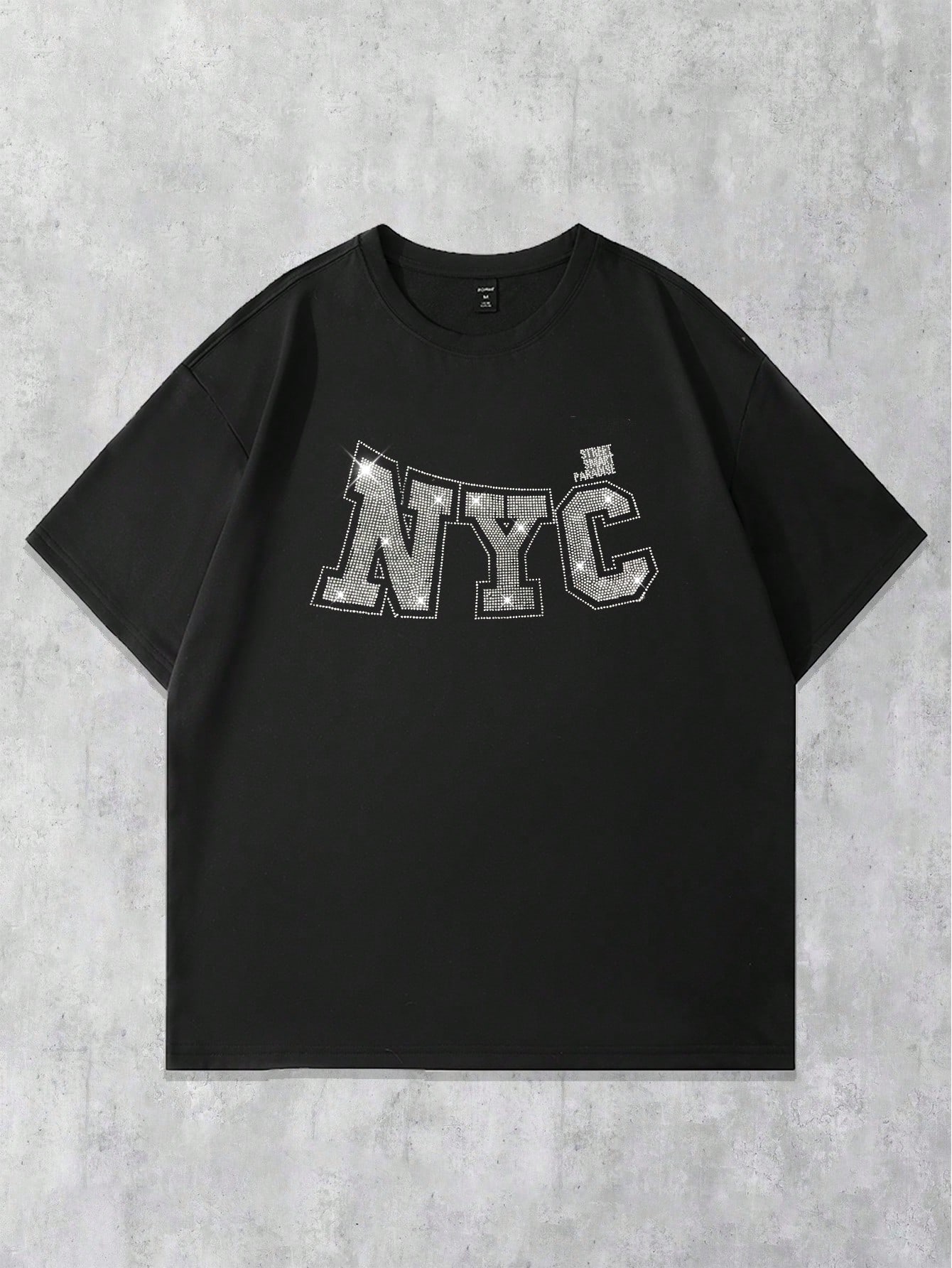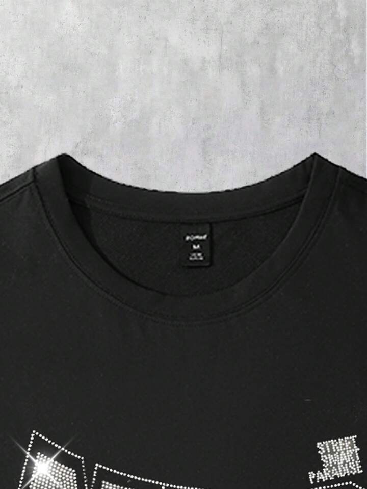 Street Life T-shirt da uomo casual con grafica a lettere e strass, scollo tondo, maniche corte, adatta per l'estate e le feste