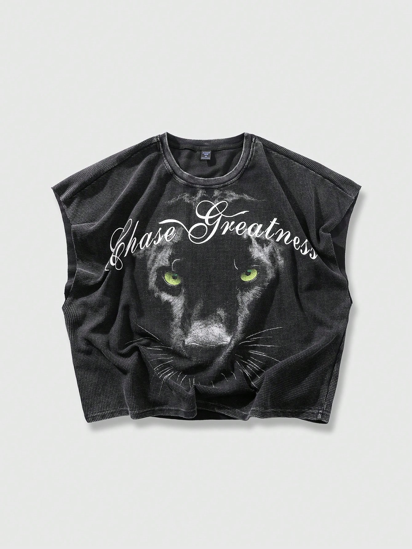 Street Life Canotta casual da uomo con stampa e scritta, vestibilità ampia, collo rotondo, estiva
