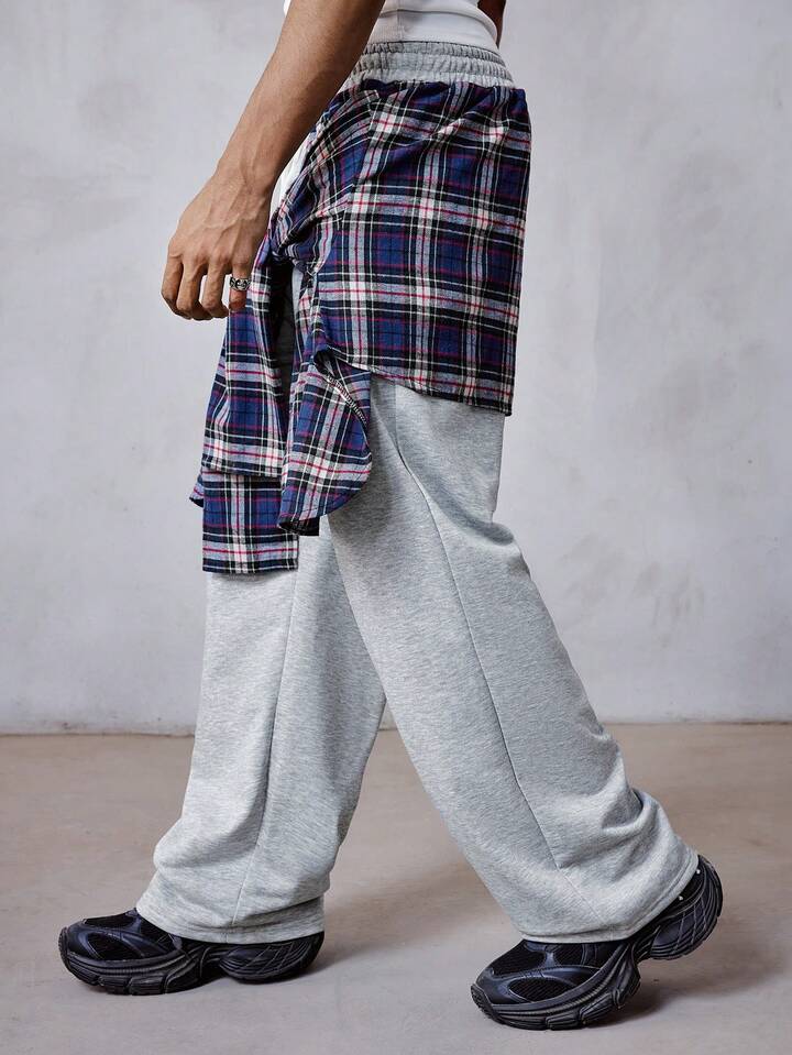 Street Life Pantaloni casual da uomo in patchwork a quadri con coulisse in vita, 2 in 1