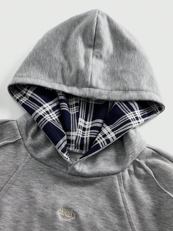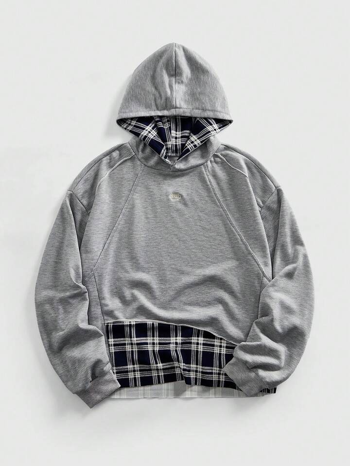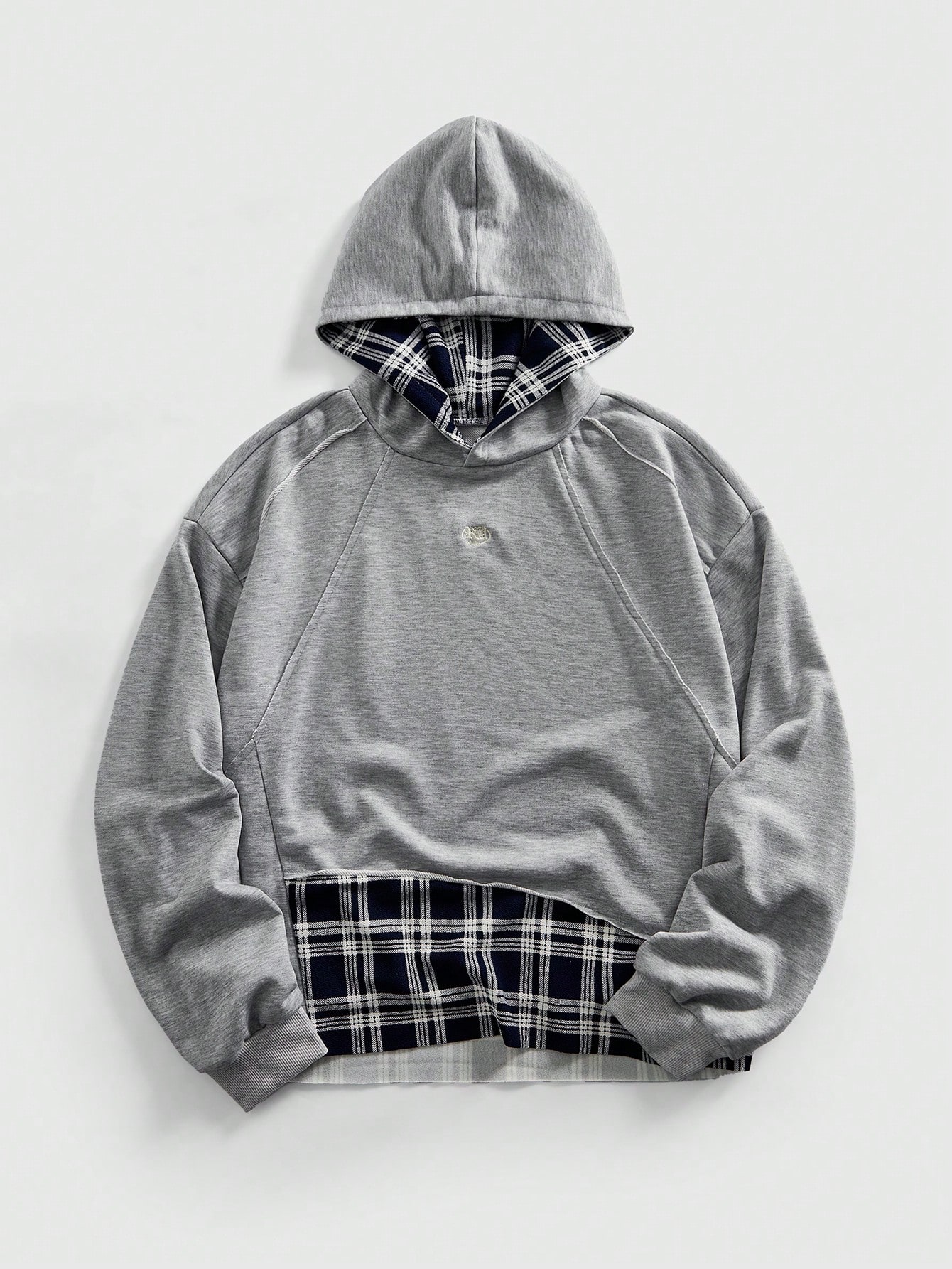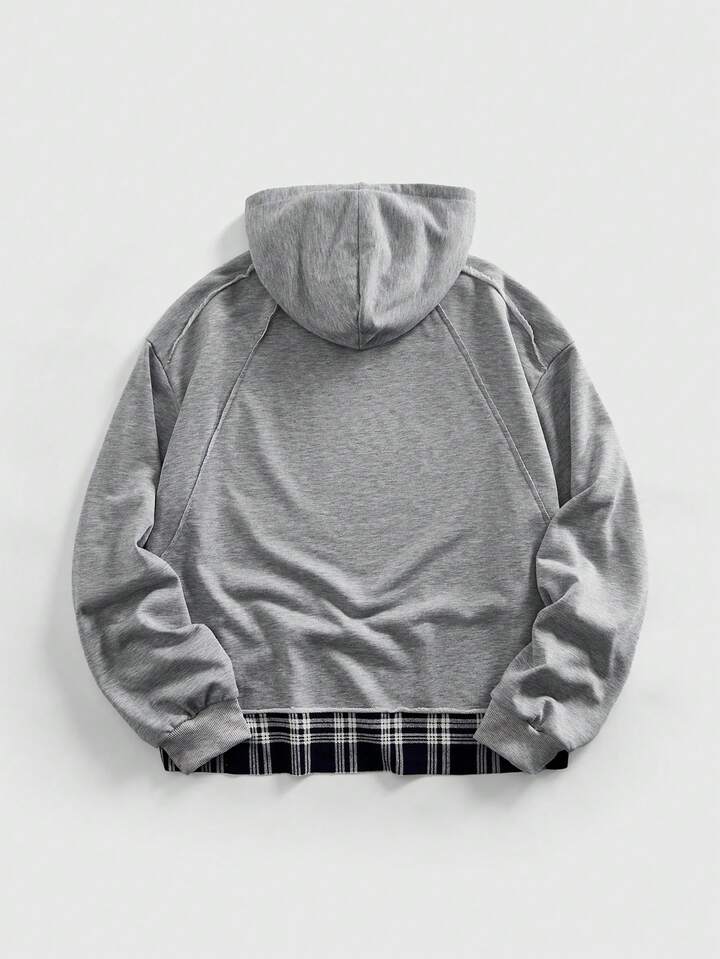 Street Life Felpa con cappuccio casual da uomo a quadri e patchwork, autunnale