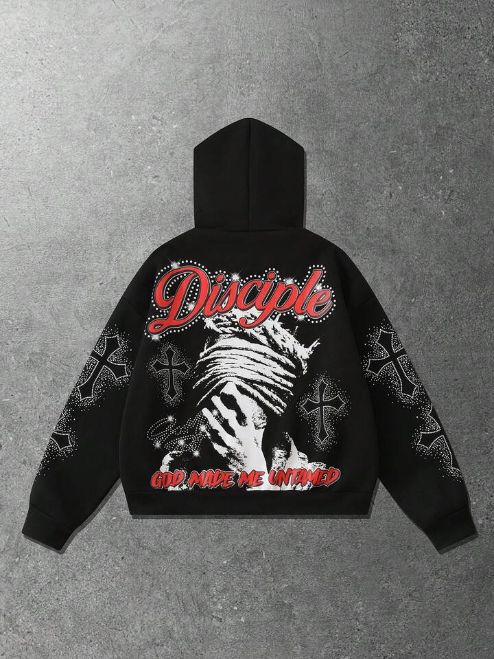 Street Life Felpa con cappuccio casual da uomo con grafica ritratto, stile urban retrò, autunno