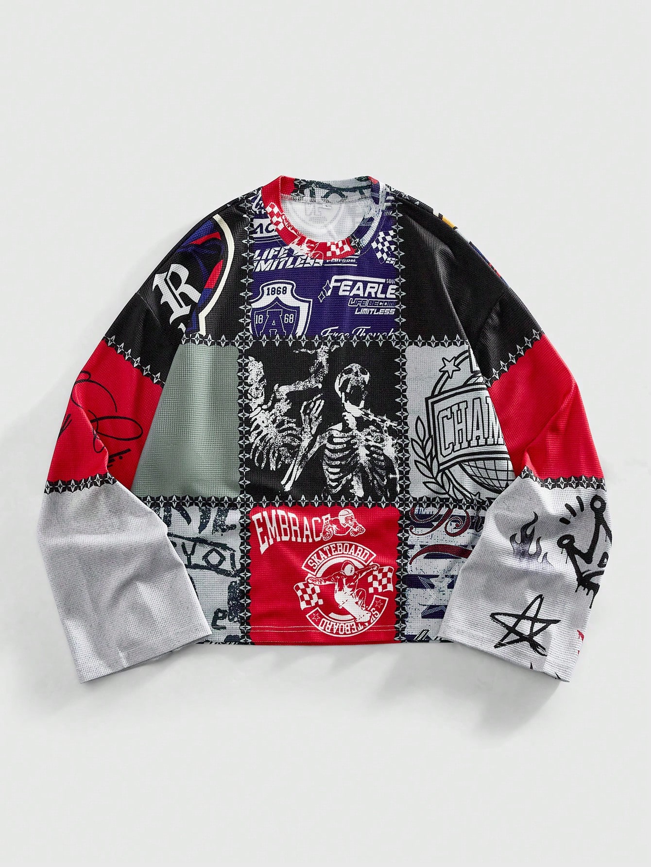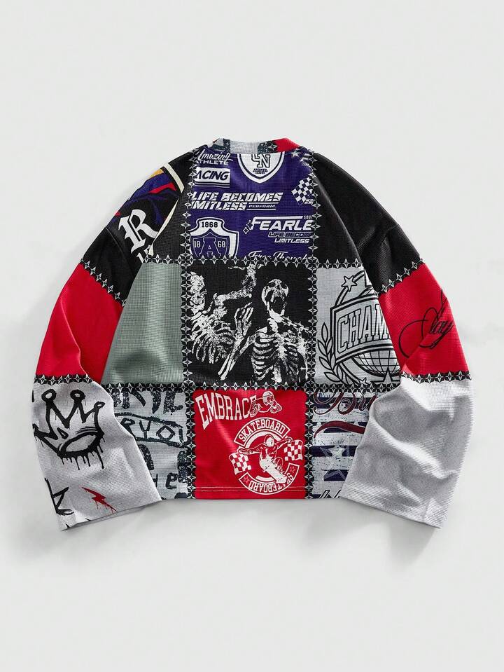 Street Life Maglietta casual da uomo a maniche lunghe con stampa teschio, collo rotondo, autunnale
