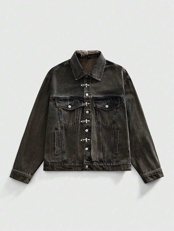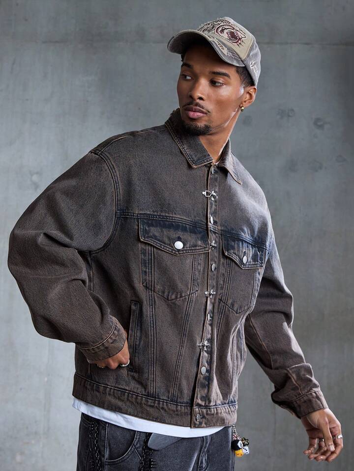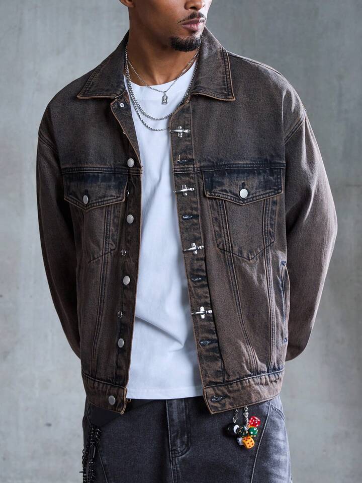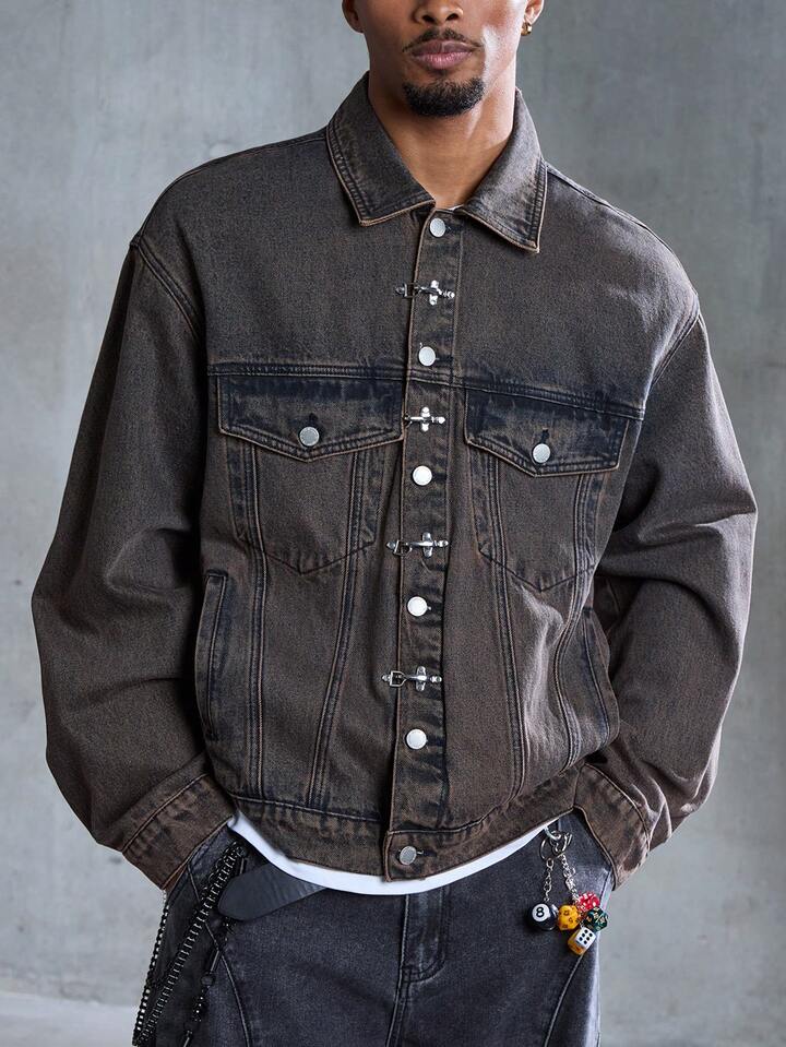 Street Life Giacca di jeans casual da uomo con colletto e fibbia a forma di aereo retrò