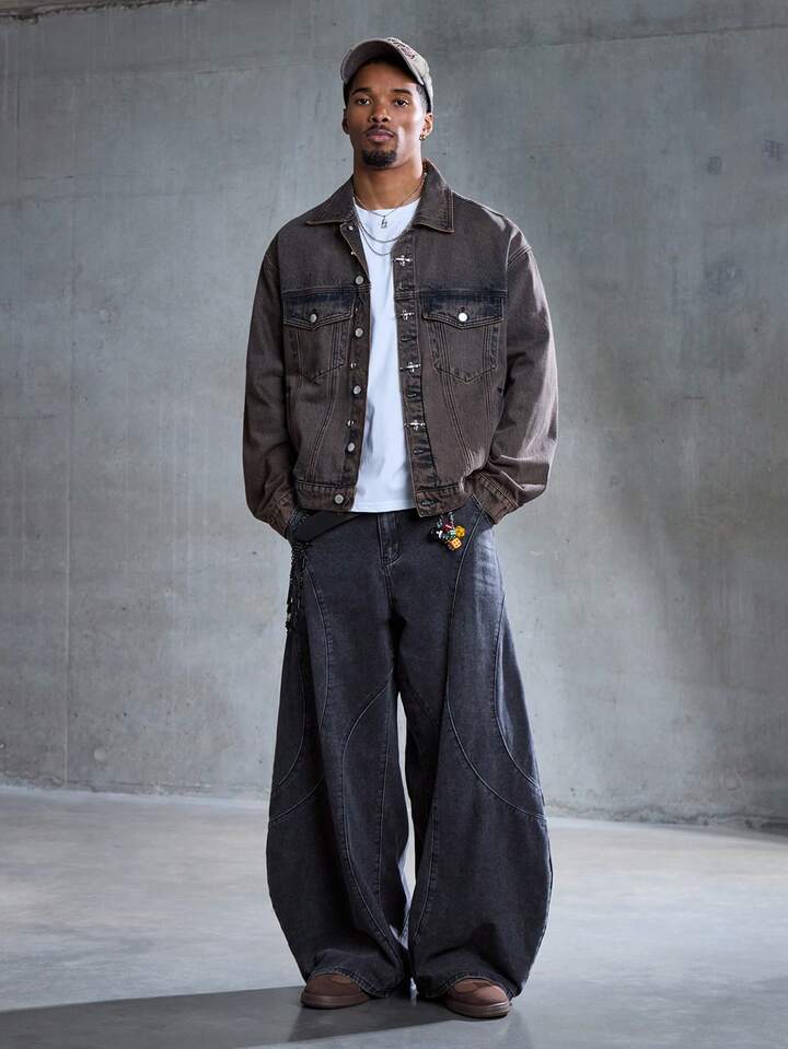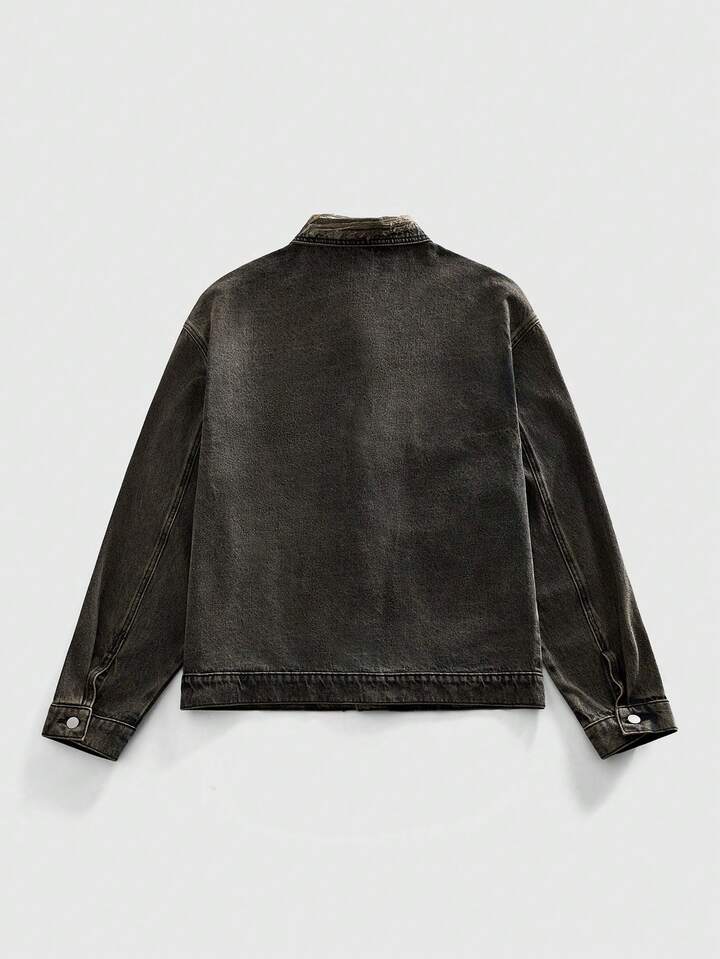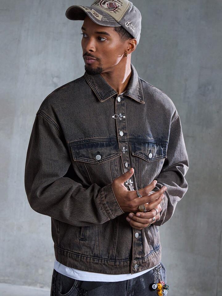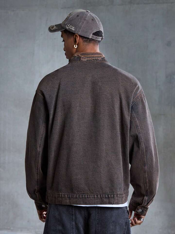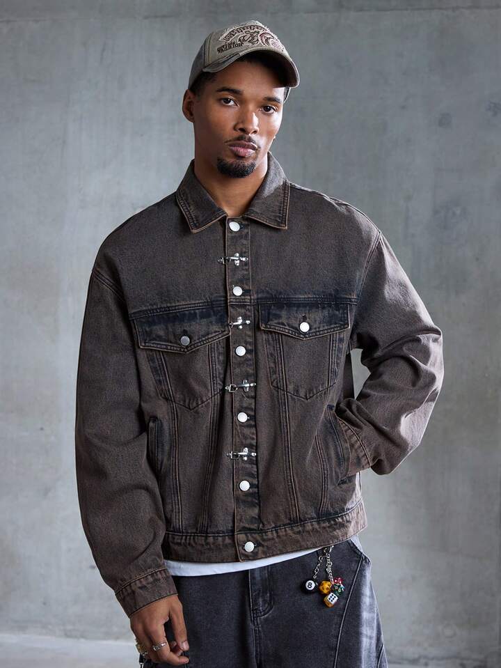 Street Life Giacca di jeans casual da uomo con colletto e fibbia a forma di aereo retrò