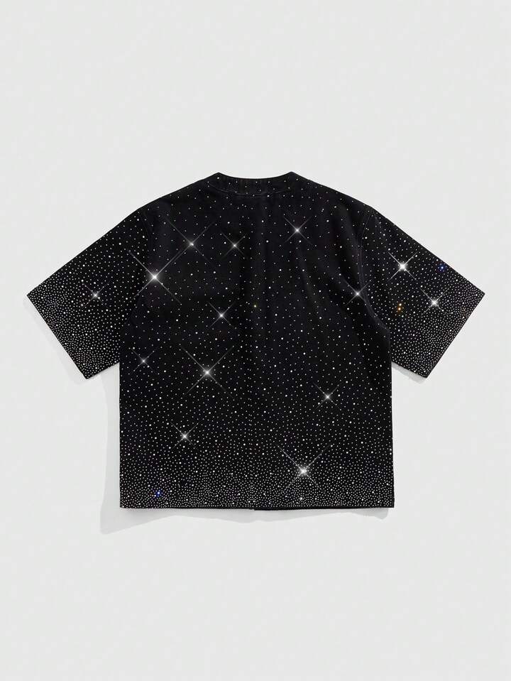 Street Life Giacca di jeans casual da uomo a manica corta, monopetto, decorata con cristalli, adatta per l'estate