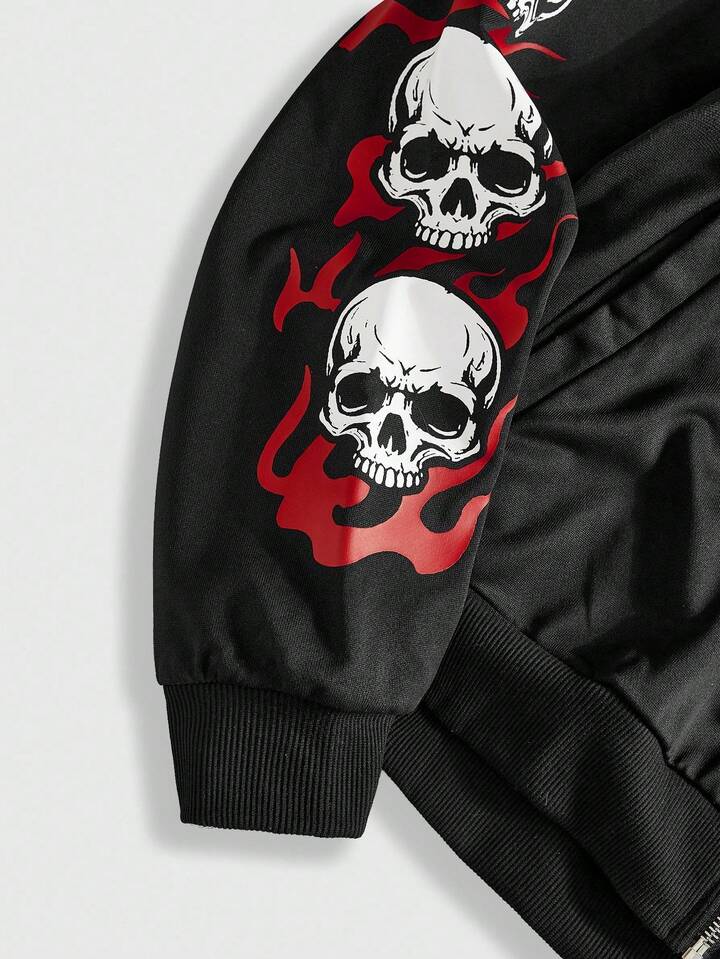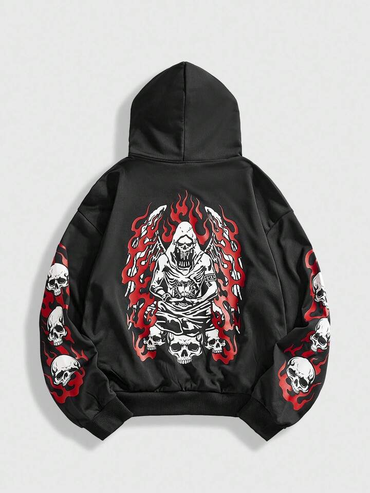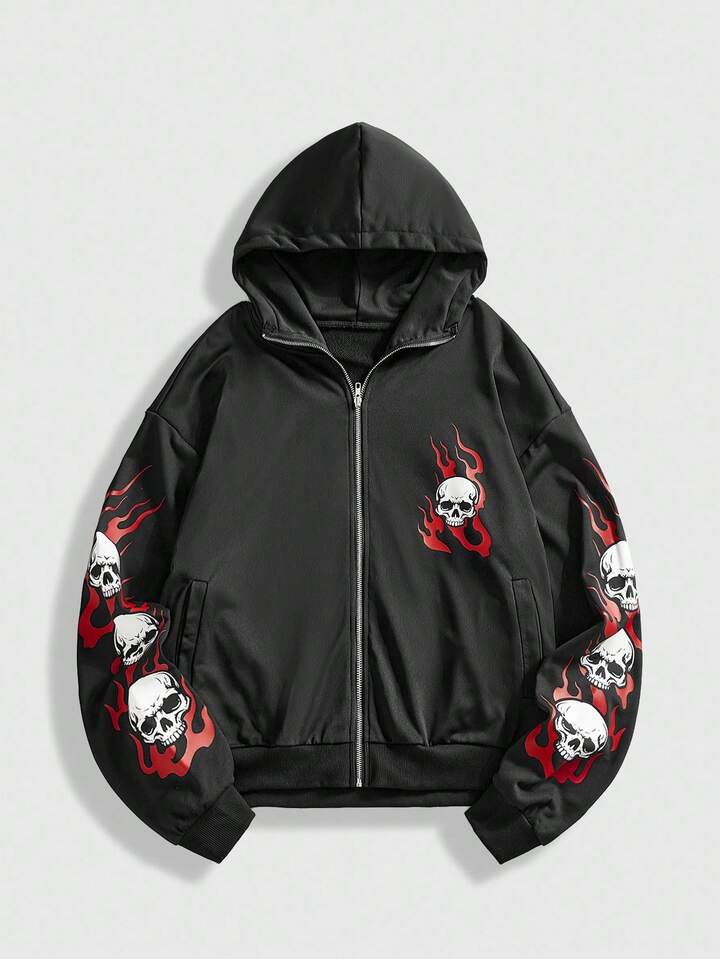 Street Life Felpa con cappuccio casual da uomo con stampa teschio, autunno/inverno