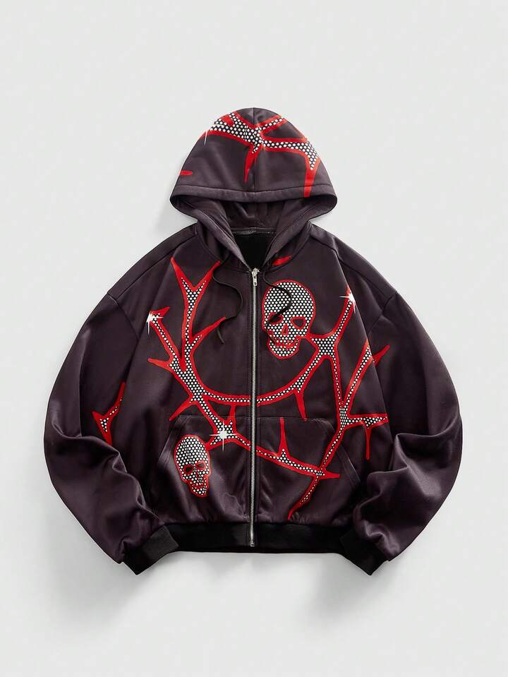 Street Life Felpa con cappuccio casual da uomo con stampa teschio, autunno/inverno