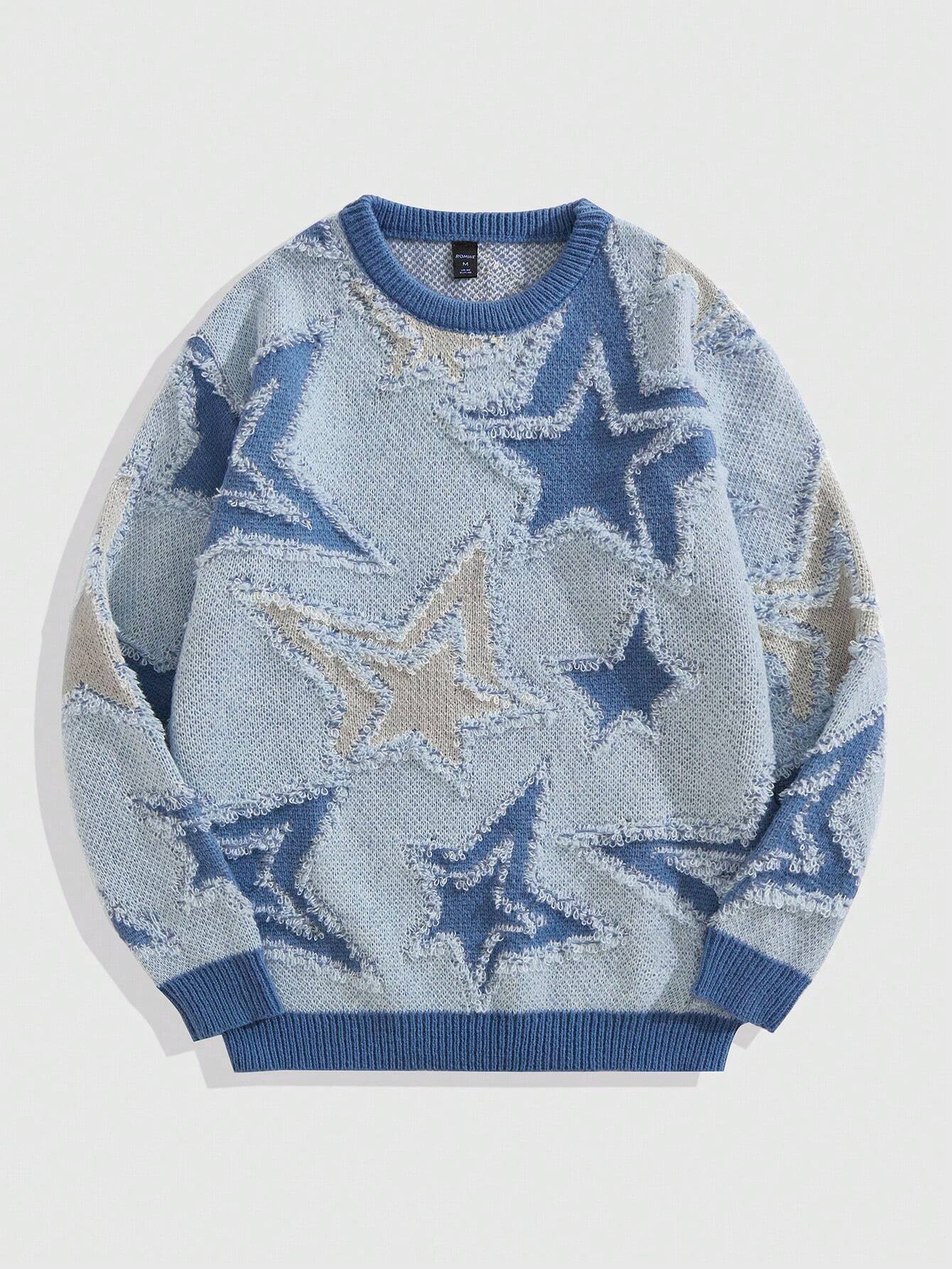 Street Life Maglione casual da uomo con motivo a stelle e contrasto di colori, adatto per l'autunno/inverno
