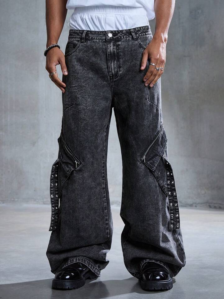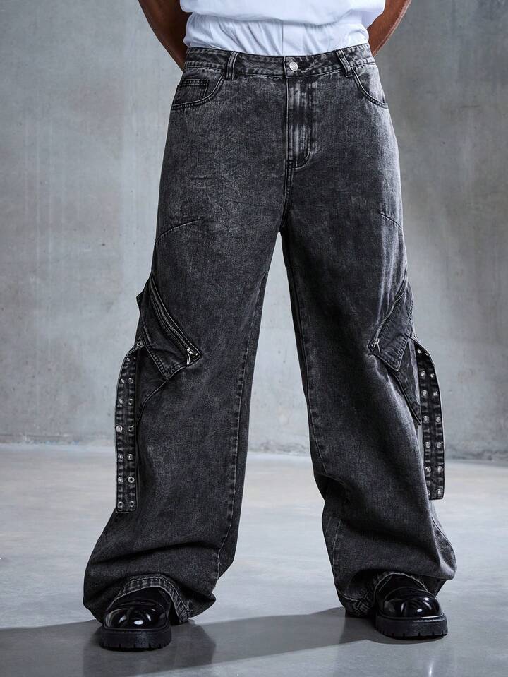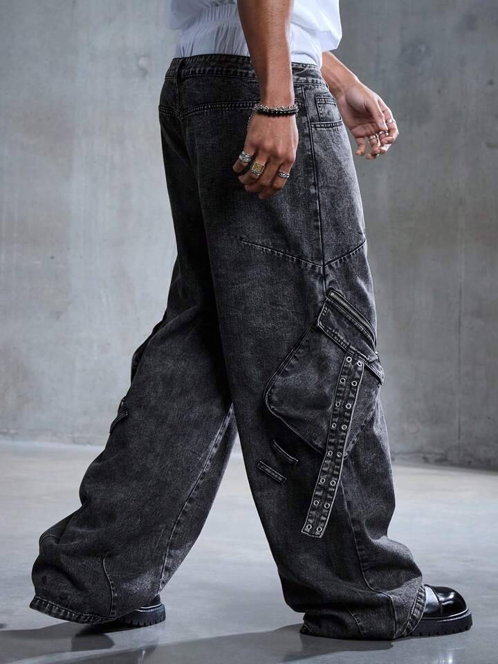 Street Life Jeans cargo casual da uomo lavati e consumati