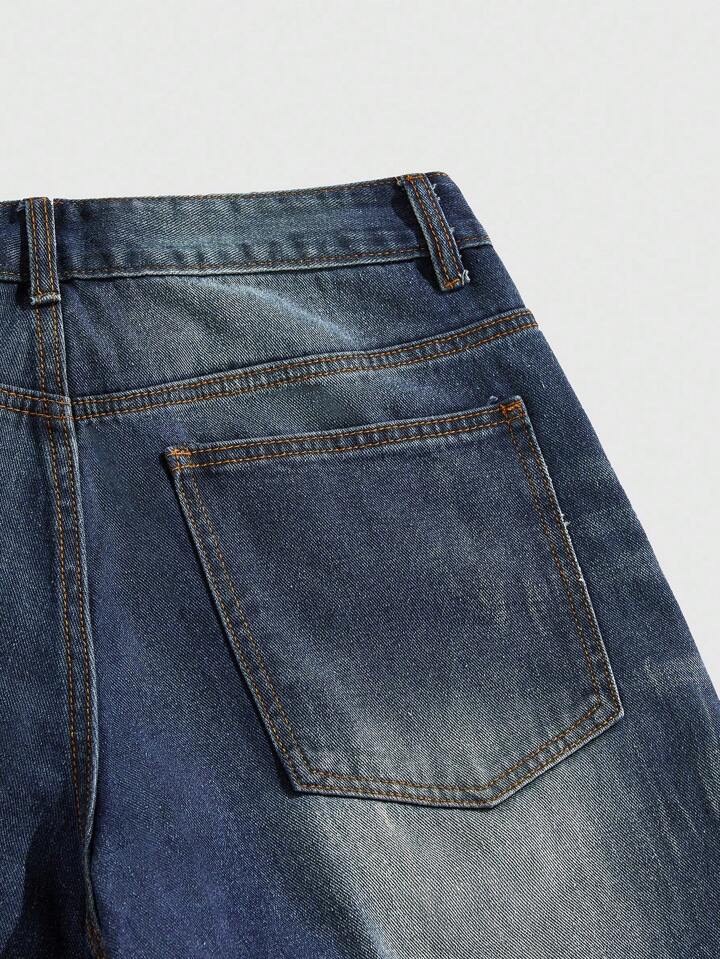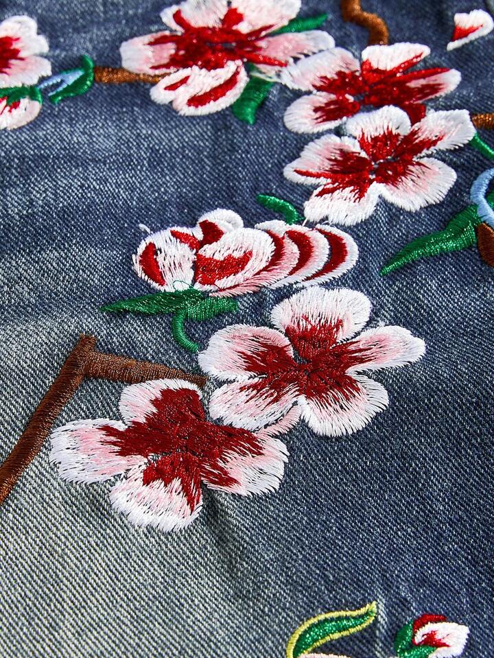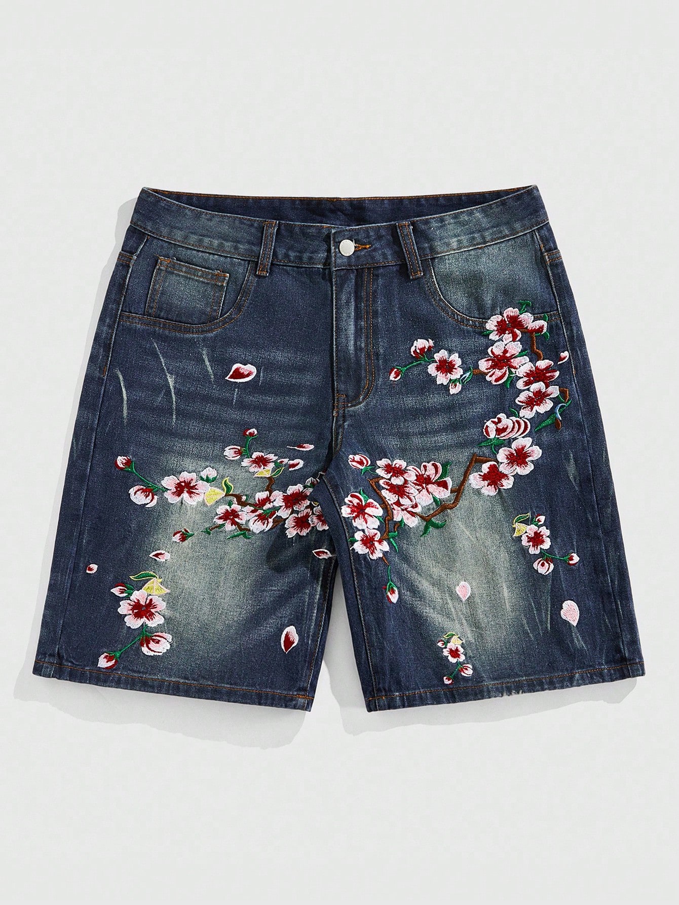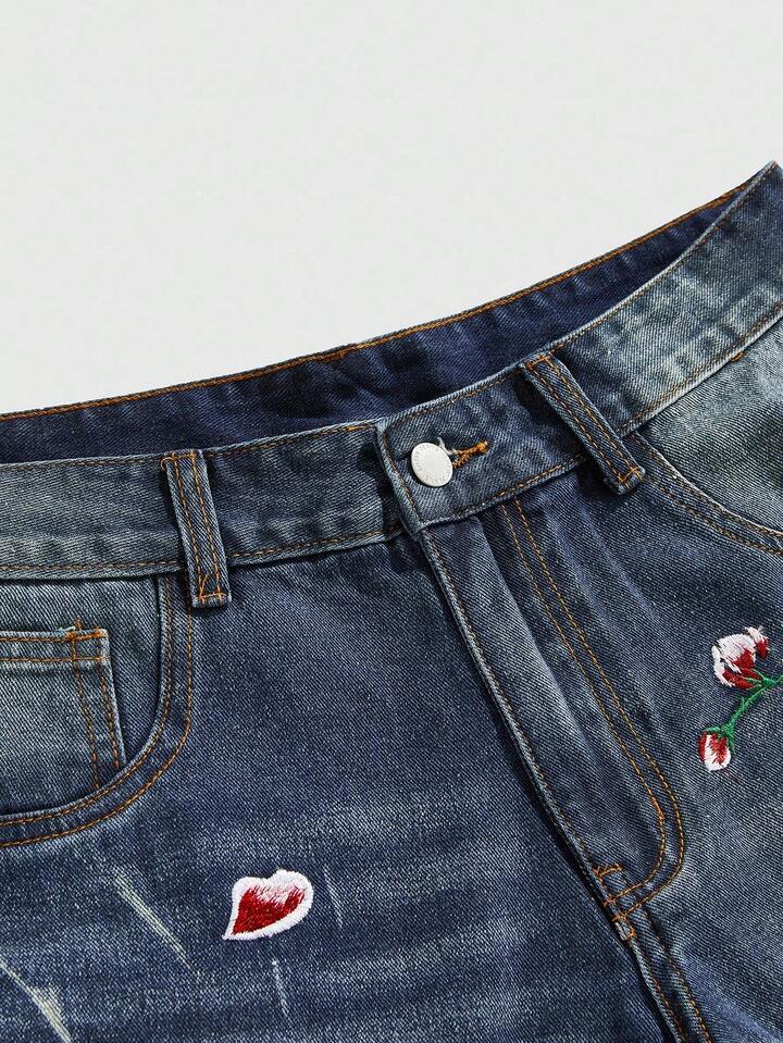 Street Life Pantaloncini di jeans casual da uomo, lavati, con ricamo floreale, per l'estate