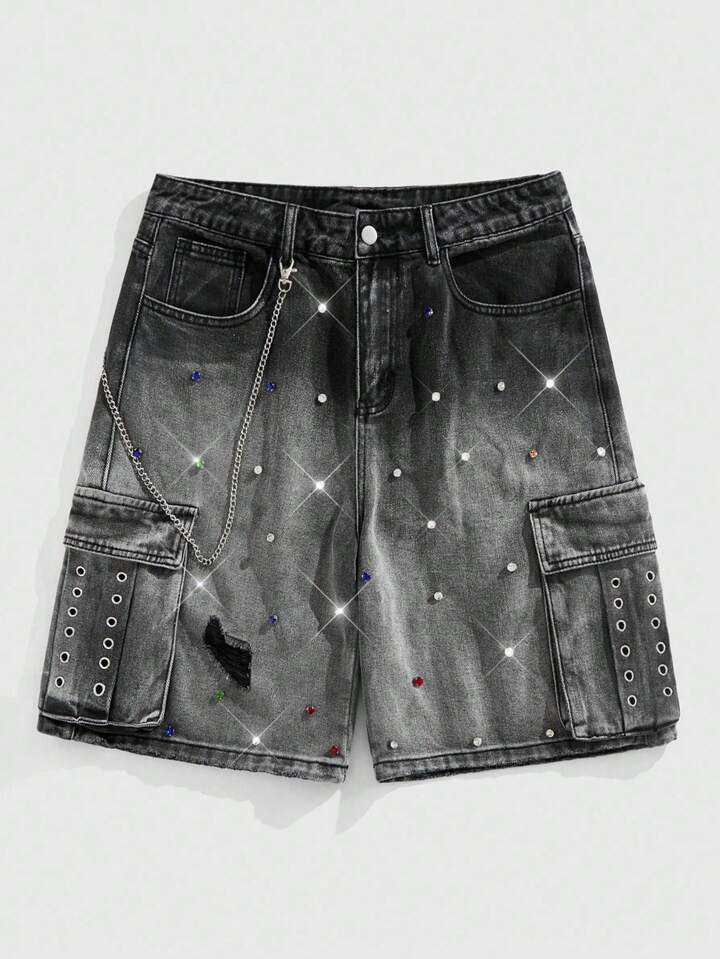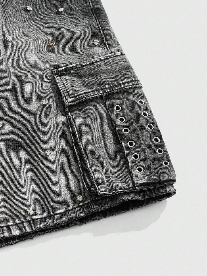 Street Life Pantaloncini di jeans casual da uomo con gradiente lavato e decorazione con borchie