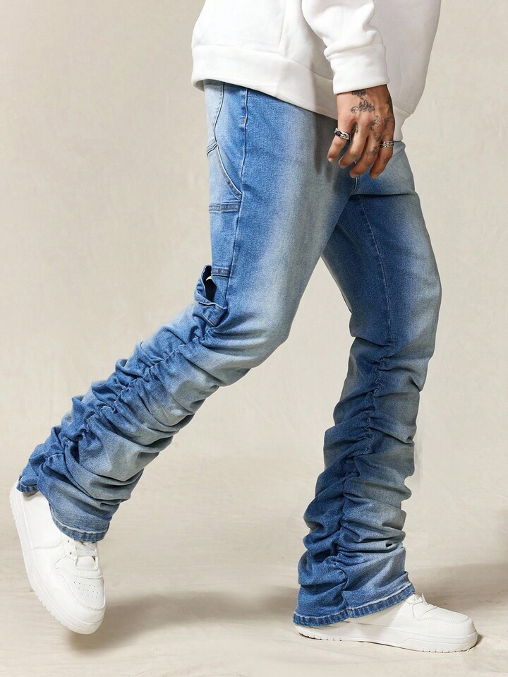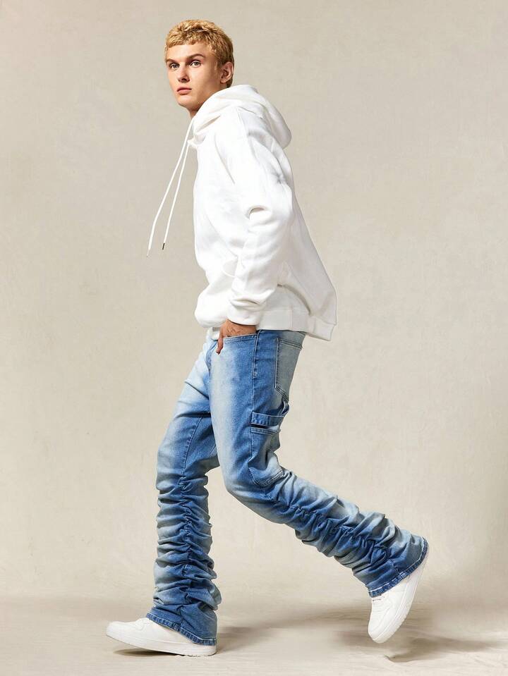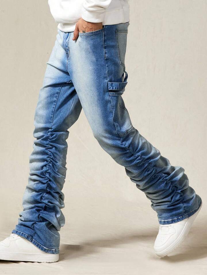 Street Life Jeans casual da uomo in denim lavato e arricciato