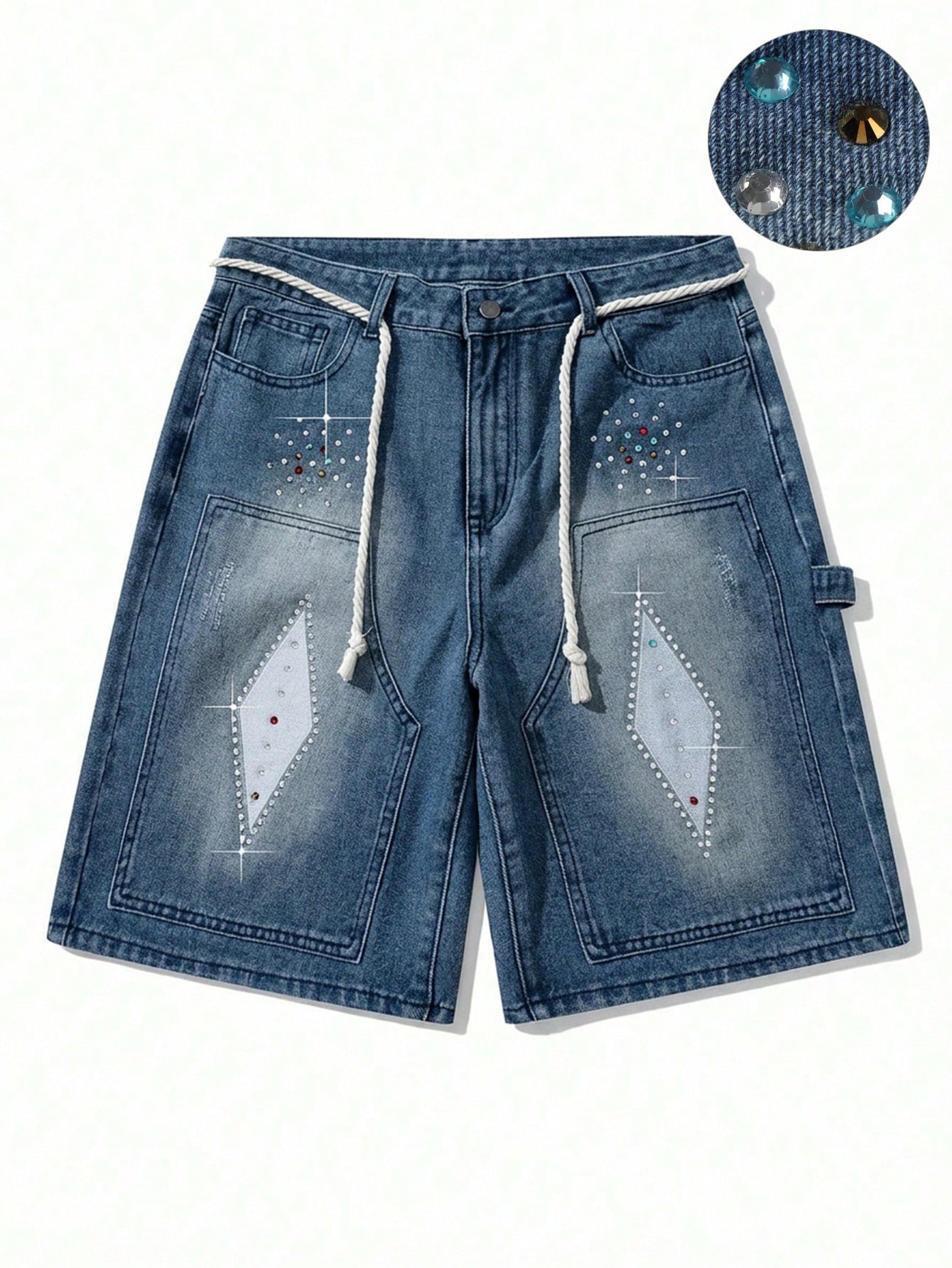 Street Life Pantaloncini di jeans casual da uomo con diamanti scintillanti lavati