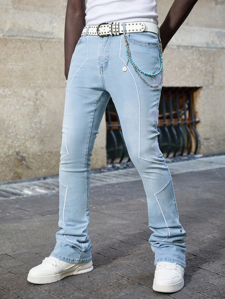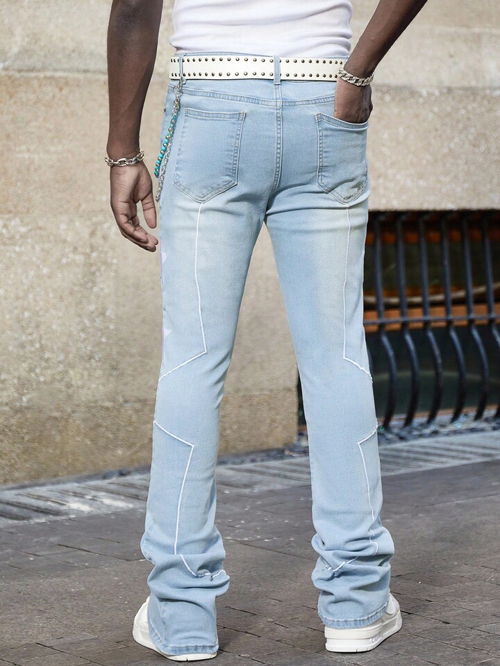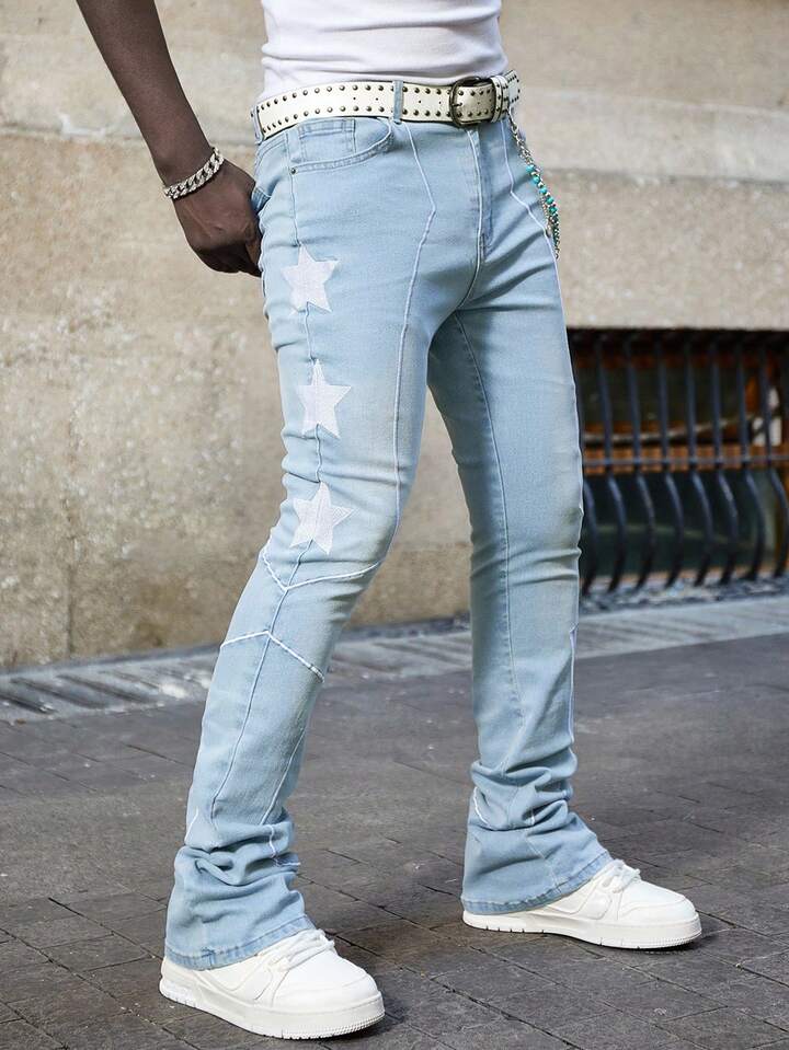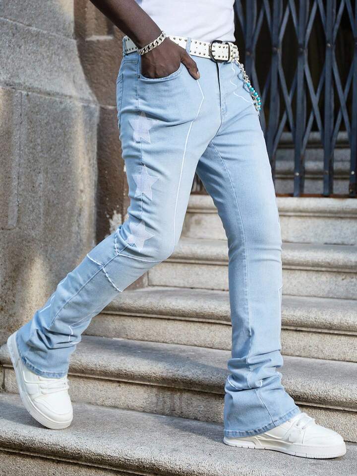Street Life Jeans casual da uomo slim fit con ricamo a stelle, lavati