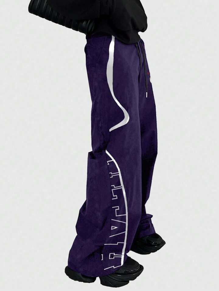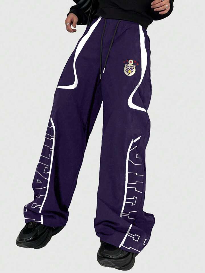 Street Life Pantaloni lunghi da uomo con coulisse in vita, stampa a blocchi di colore e lettera, adatti per uso quotidiano in primavera ed estate, per la scuola