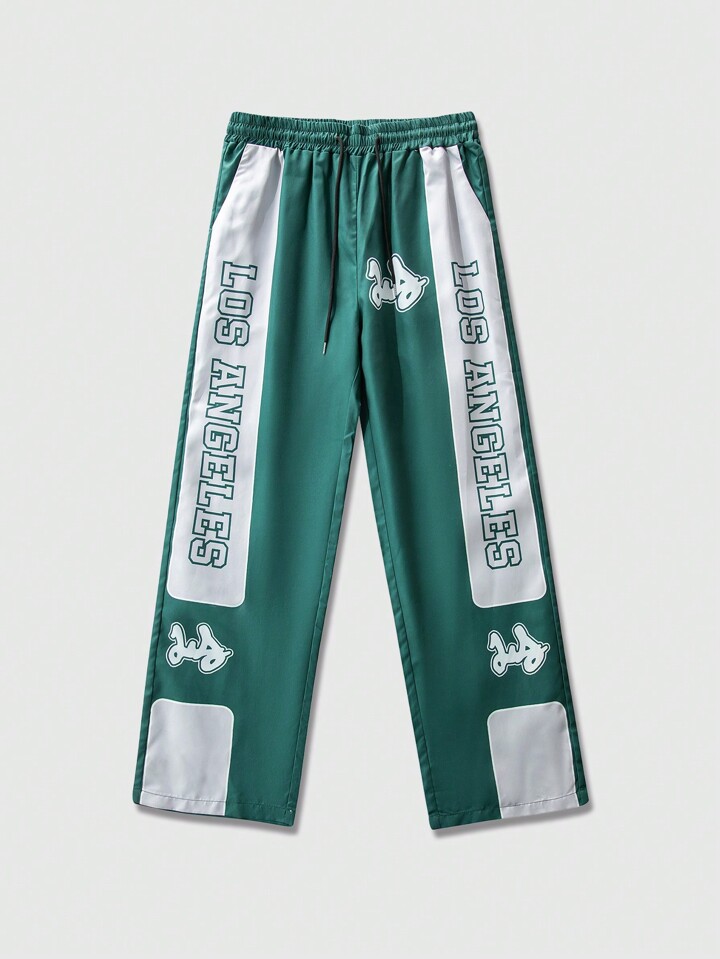 Street Life Pantaloni casual con stampa a contrasto di lettere per uomo, adatti per primavera ed estate