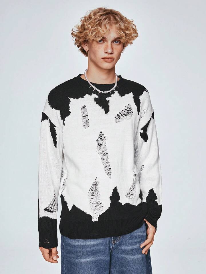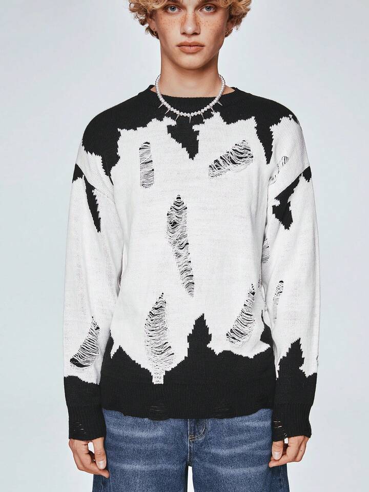 Street Life Maglione Pullover Da Uomo Con Spalle Scese E Collo Tondo In Colori A Contrasto