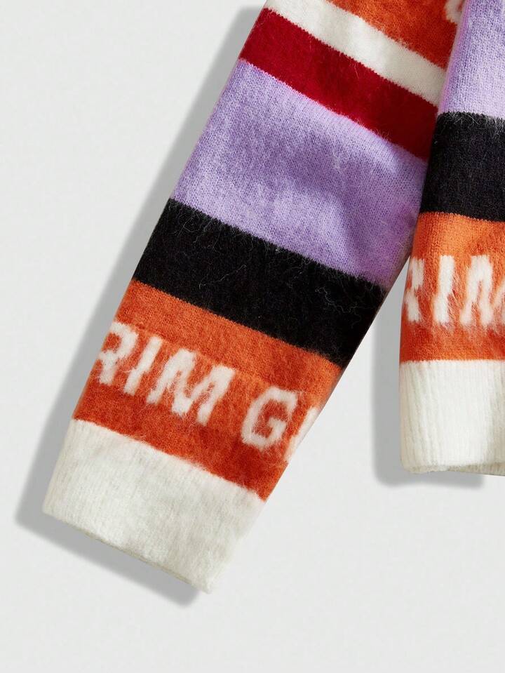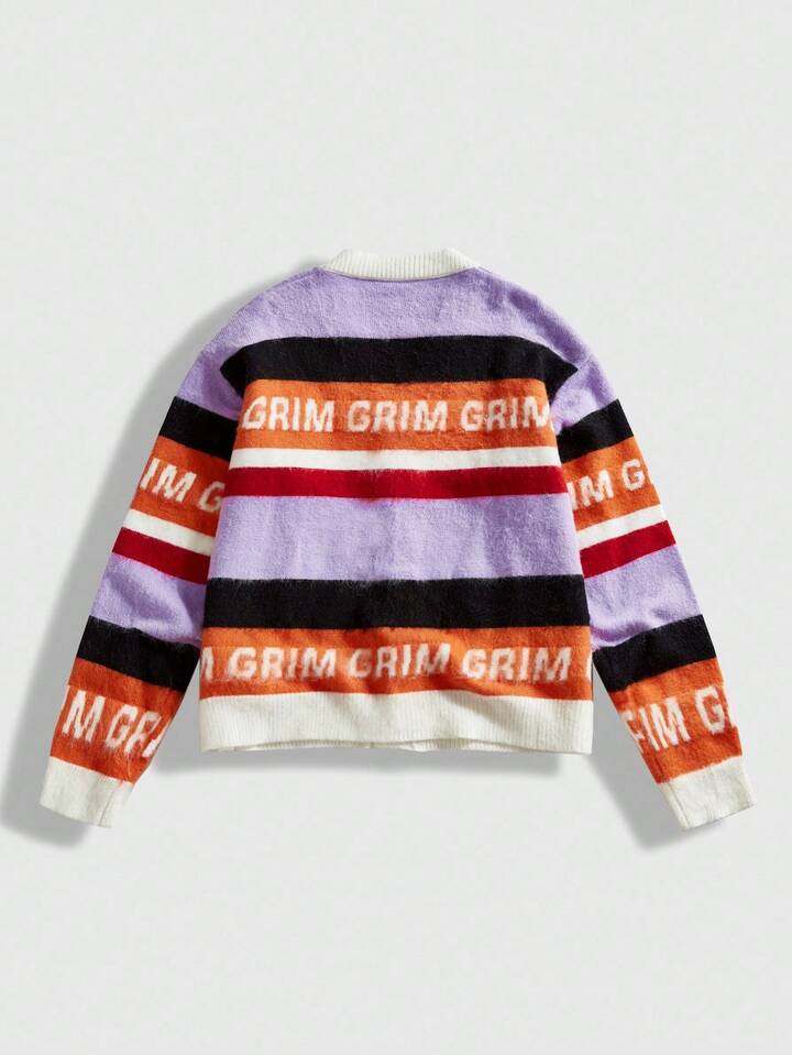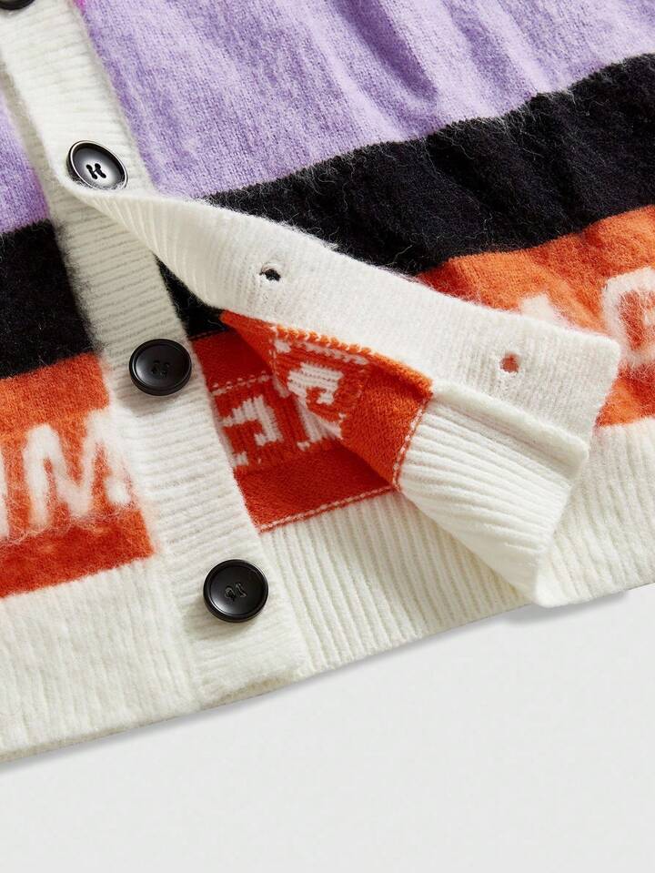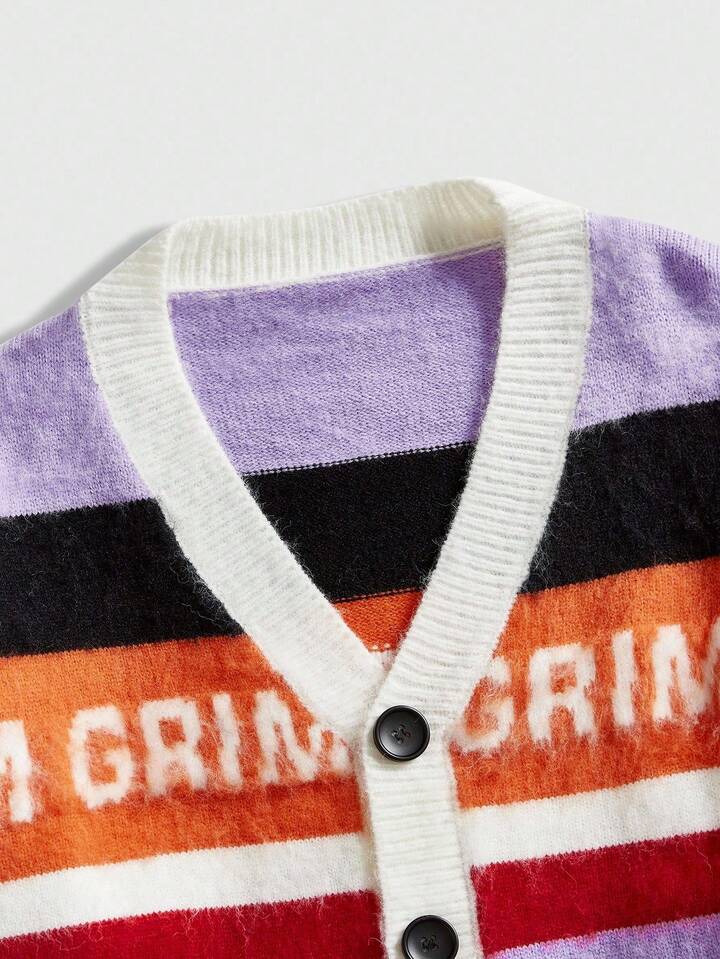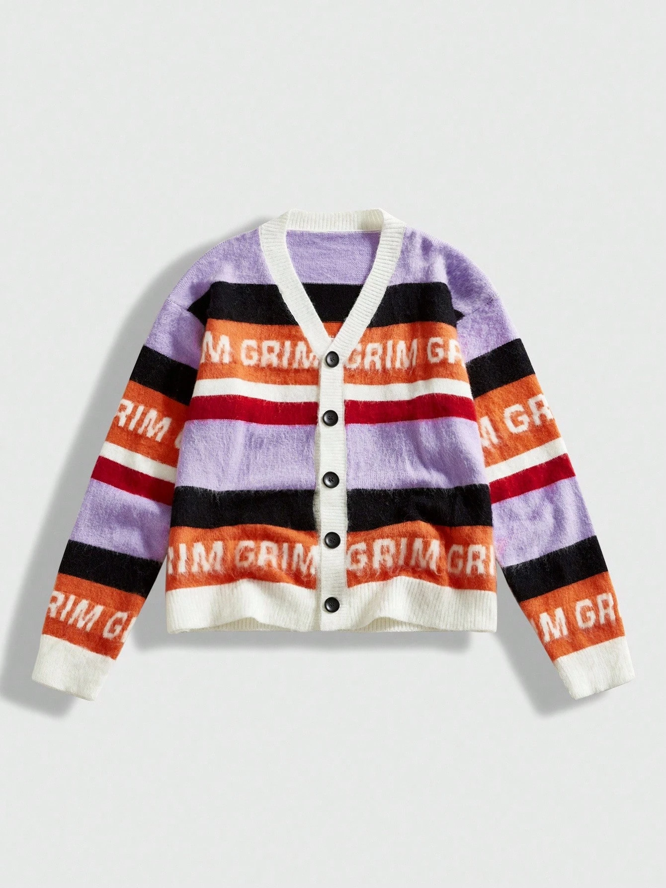 Street Life Cardigan da uomo con righe a contrasto e lettera jacquard, autunno/inverno