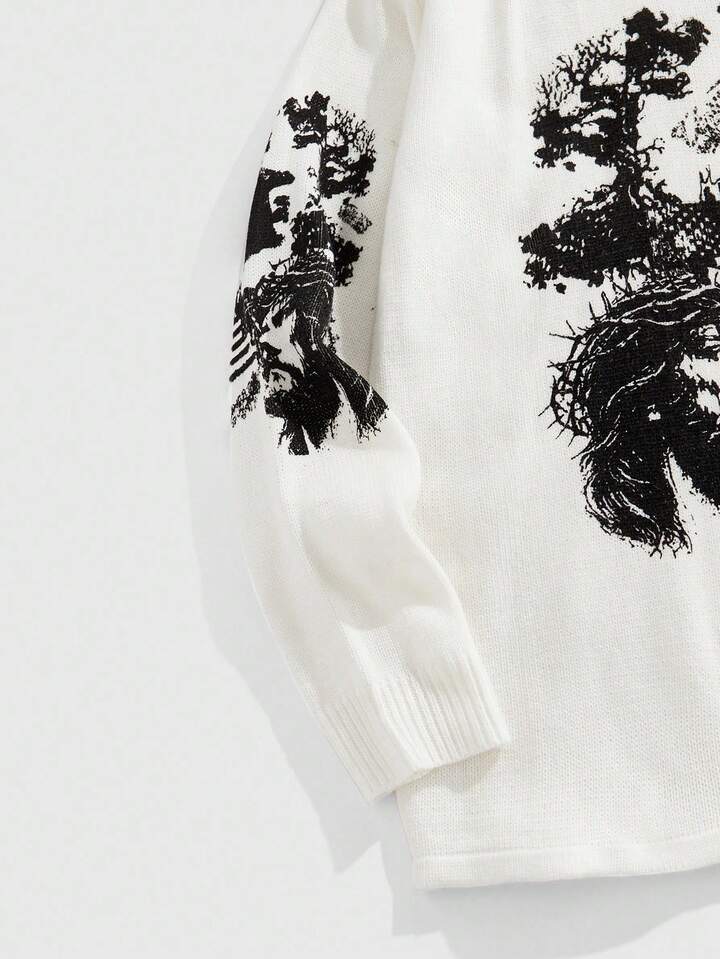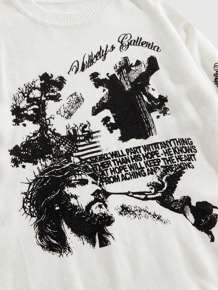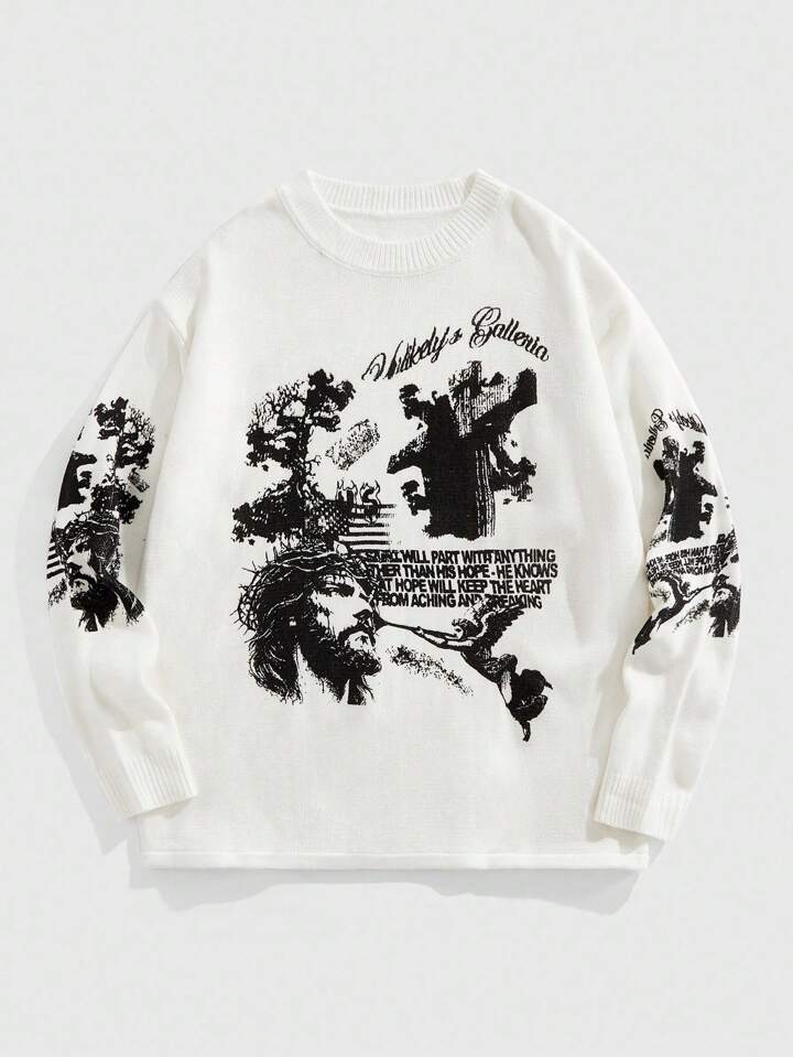 Street Life Maglione lavorato a maglia con scollo a giro e stampa, fresco e alla moda per uomo