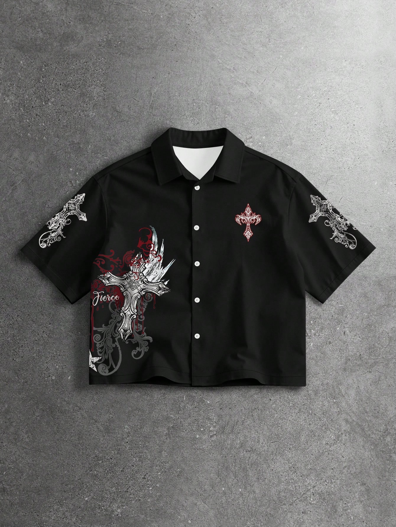 Street Life Camicia casual monopetto a maniche corte con stampa a croce per uomo