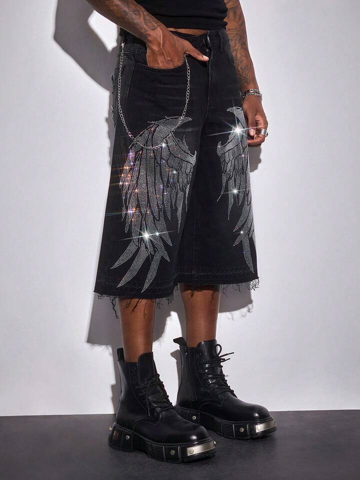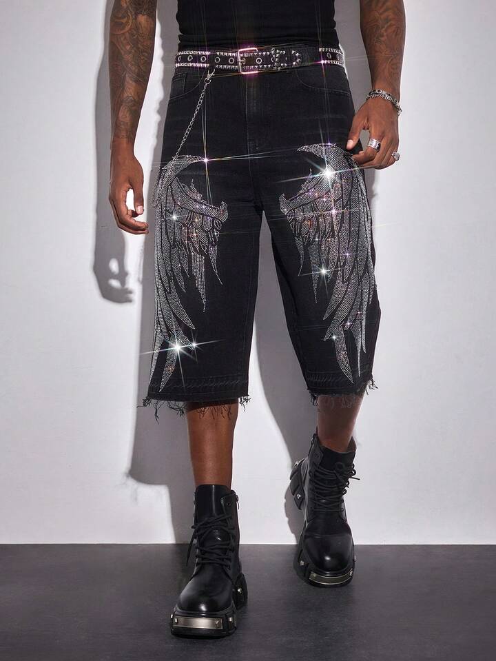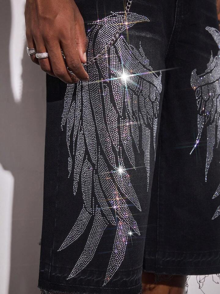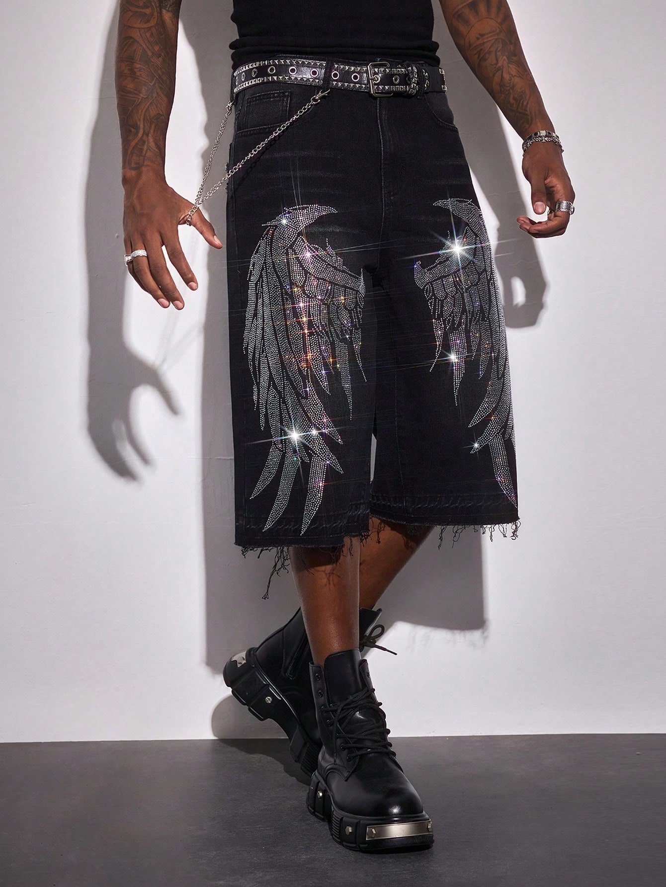 Street Life Pantaloncini di jeans da uomo 7/8 lunghezza con applicazioni di strass scuri