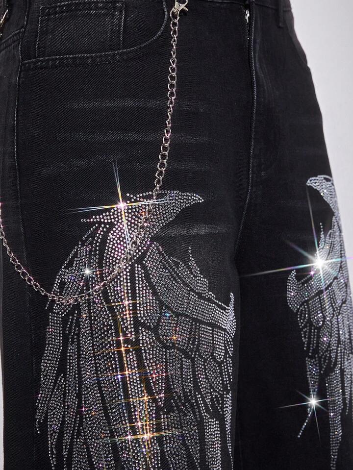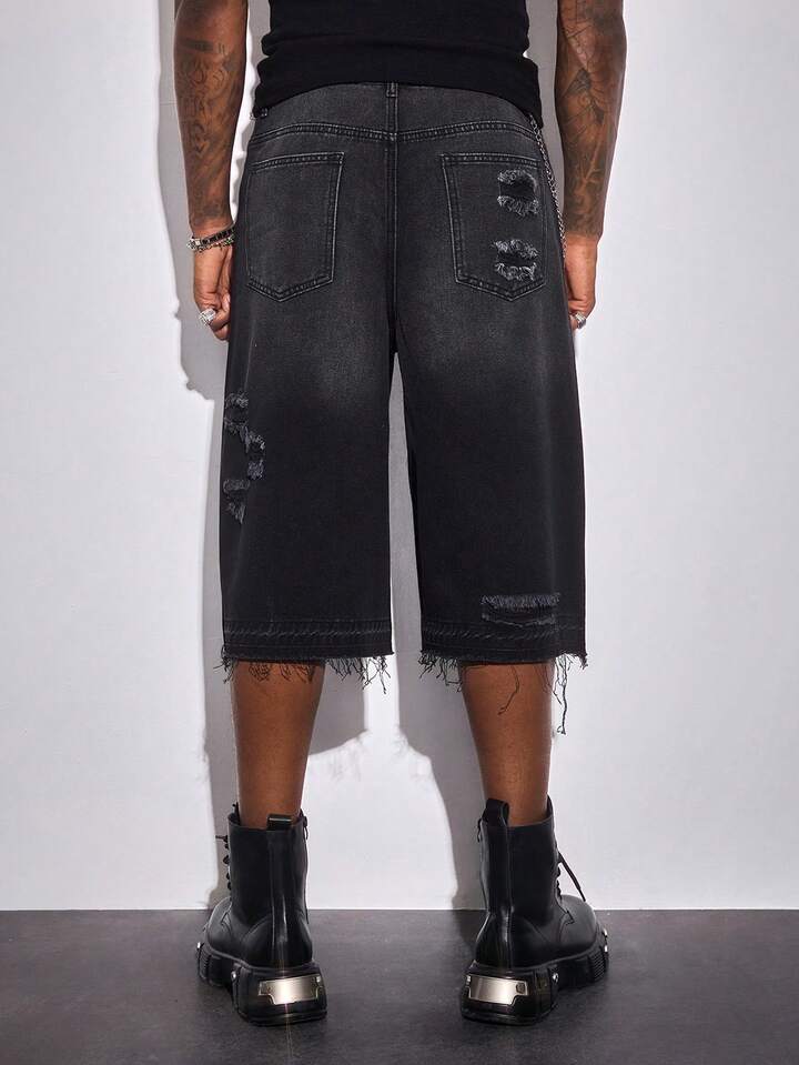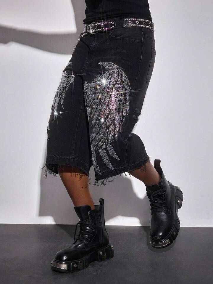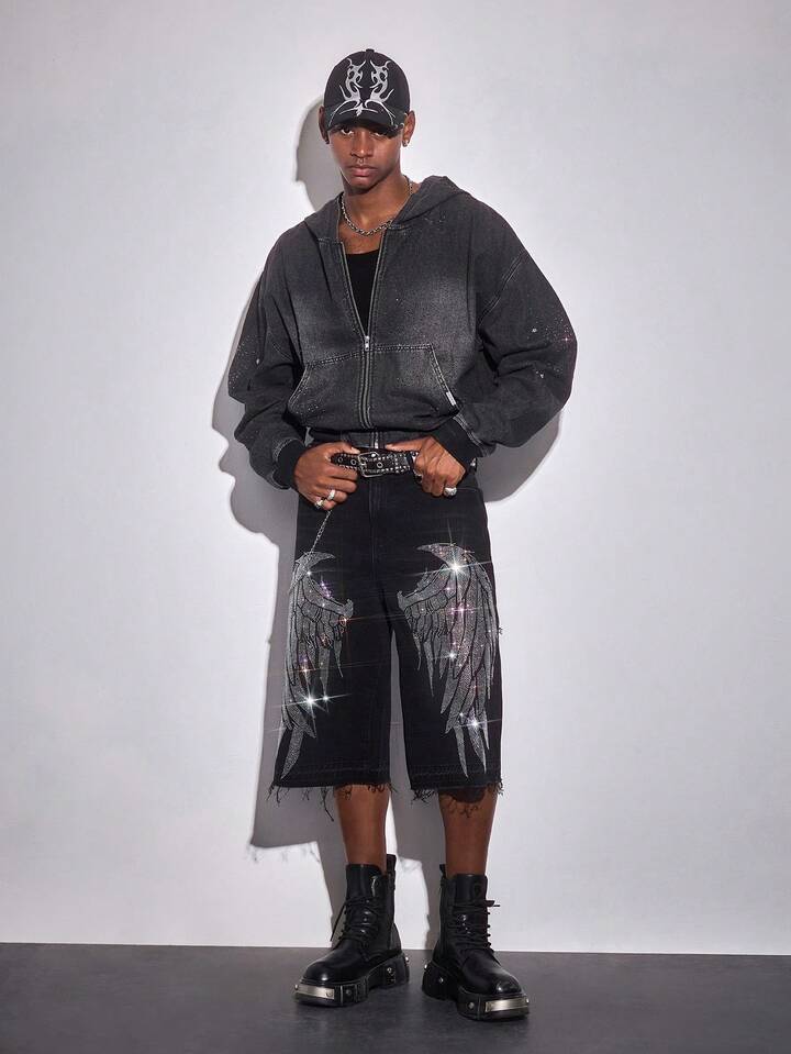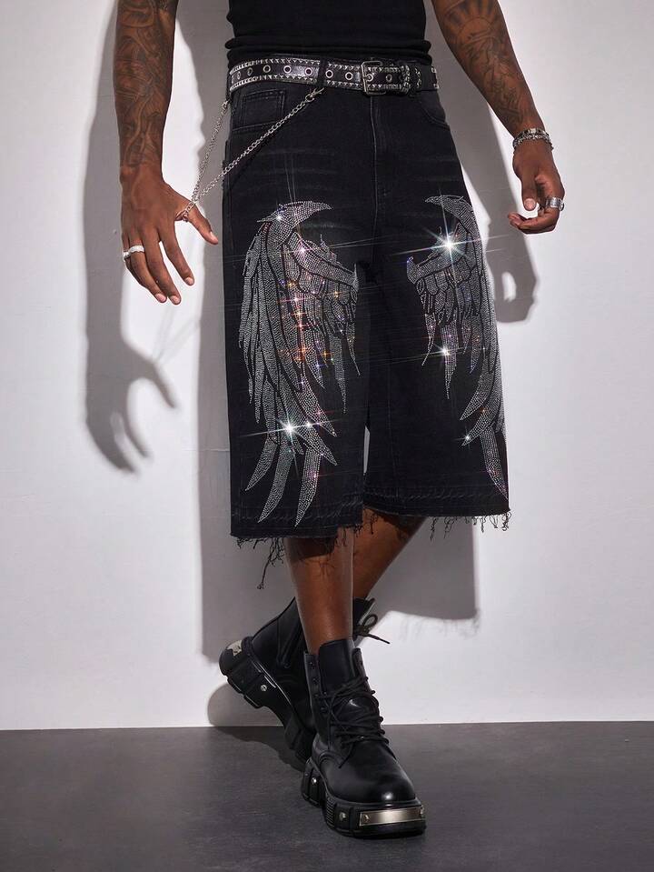 Street Life Pantaloncini di jeans da uomo 7/8 lunghezza con applicazioni di strass scuri
