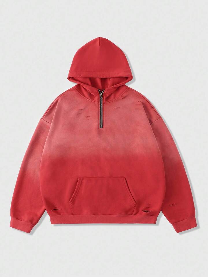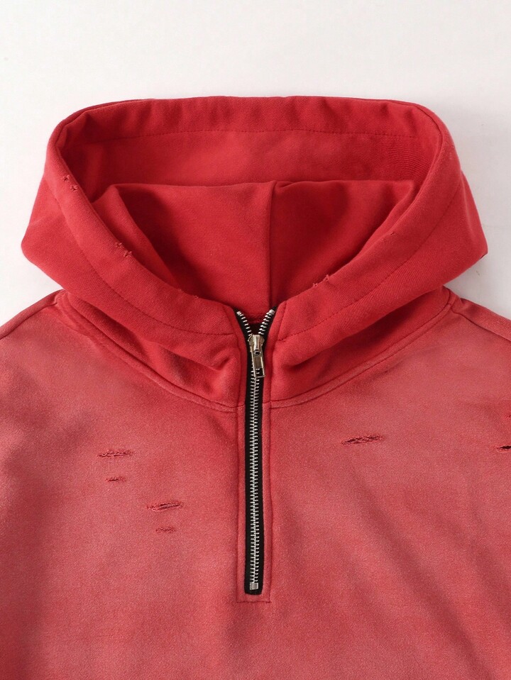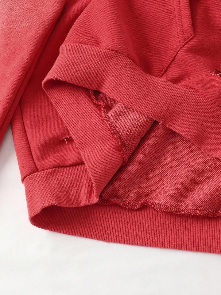 Street Life Felpa con cappuccio consumata da uomo con fori, stile corto e ampio, adatta per l'autunno