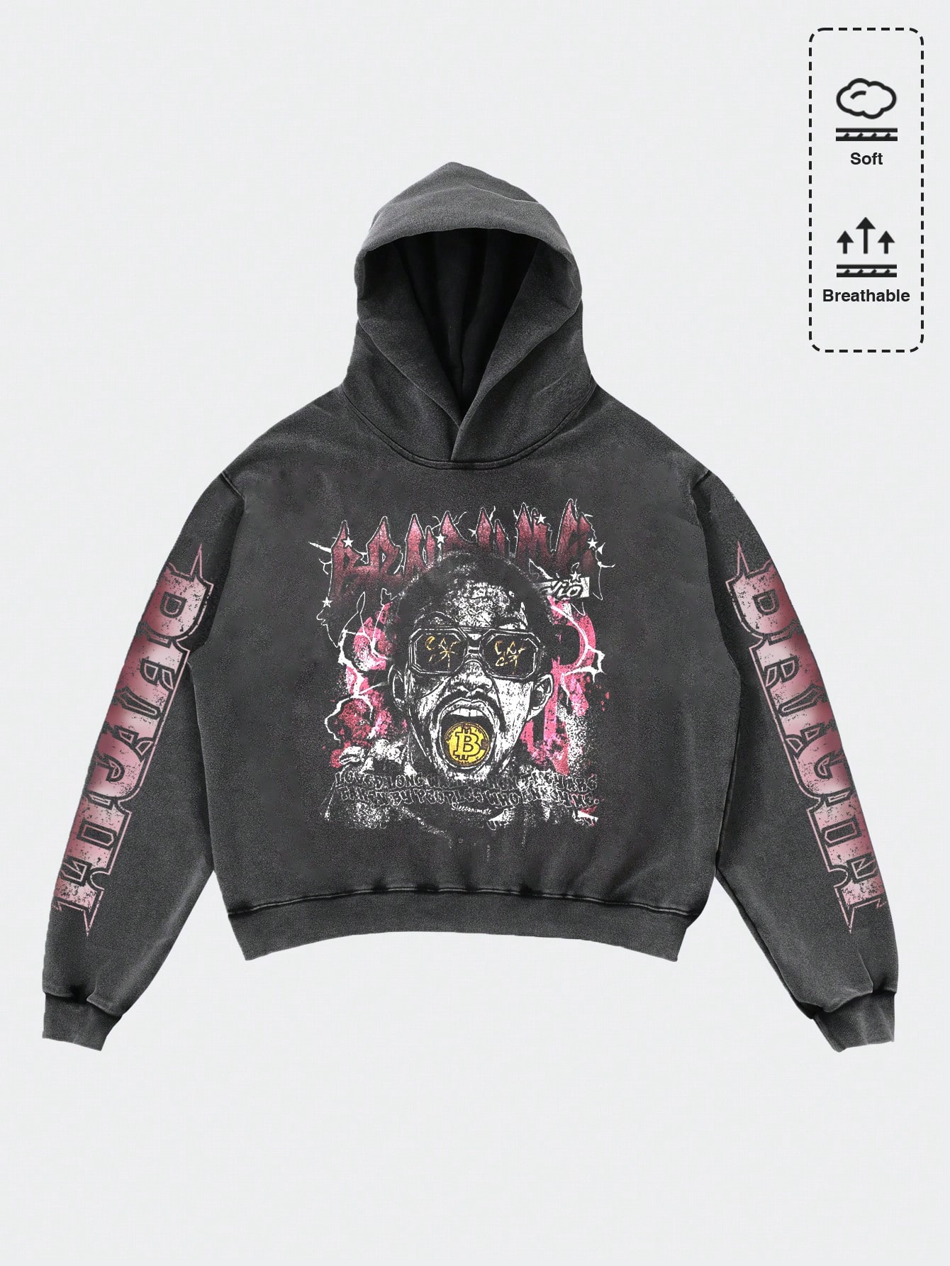 Street Life Felpa con cappuccio da uomo con stampa invecchiata, abbigliamento casual di strada