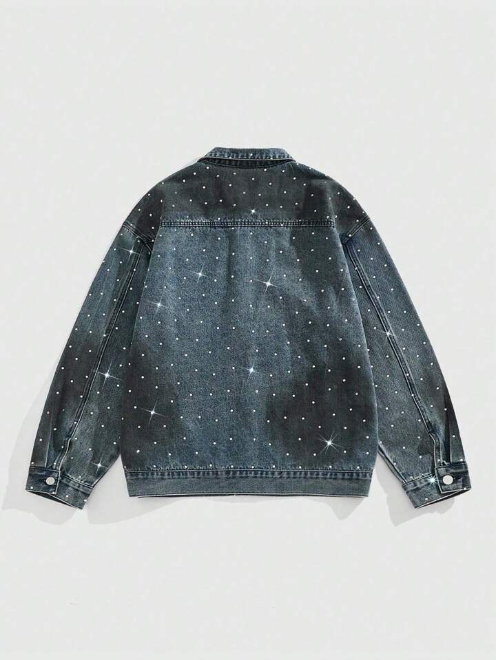 Street Life Giacca di jeans da uomo con pietra consumata, lavaggio a pietra, con strass, stile da strada