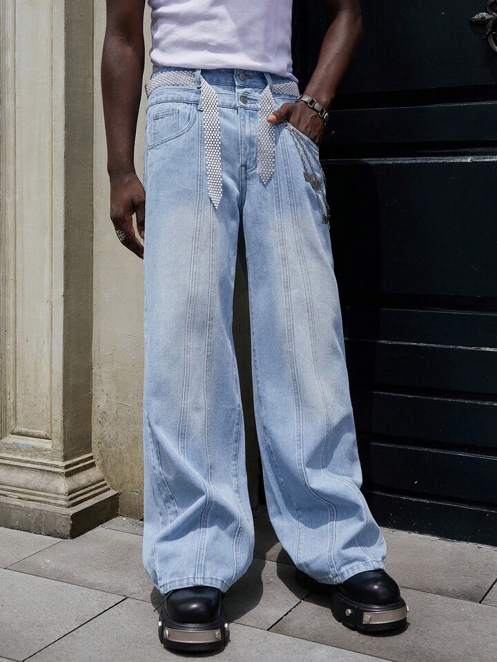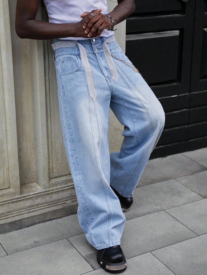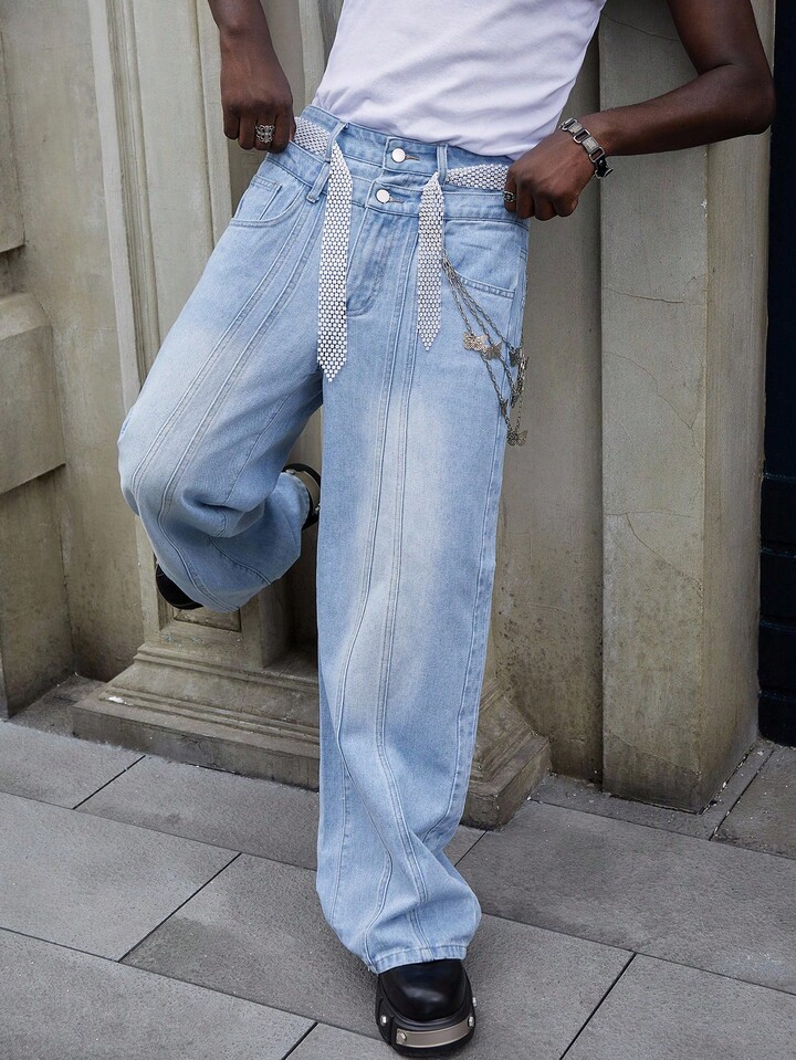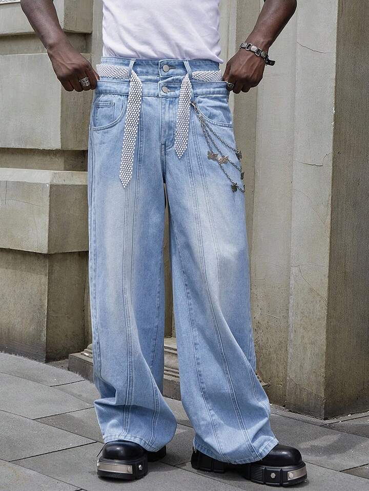 Street Life Jeans larghi con doppia vita e tasche, uomo