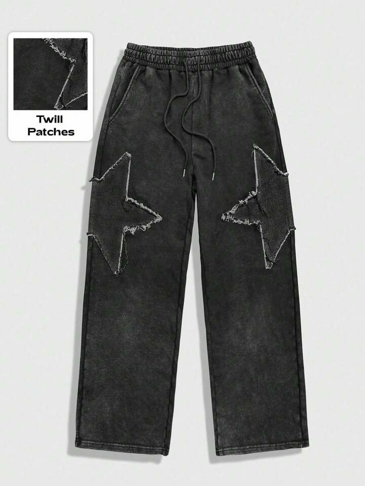 Street Life Pantaloni jogger larghi con vita con coulisse e motivo a stelle, adatti per rave