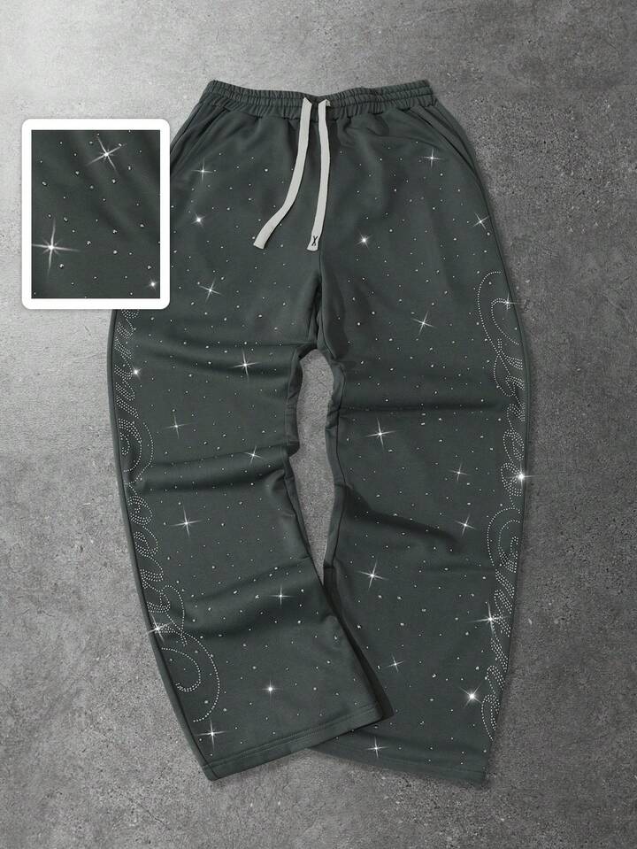 Street Life Pantaloni della tuta da uomo con vita con coulisse e gamba dritta, con stampa in strass in stile americano inglese di strada