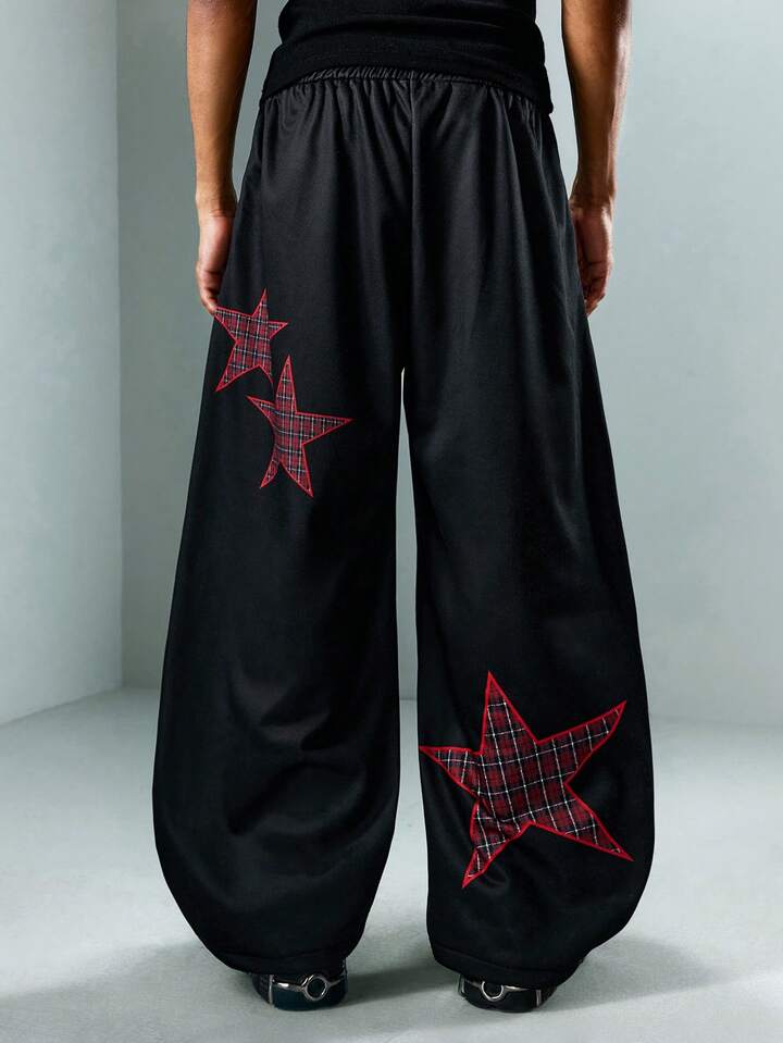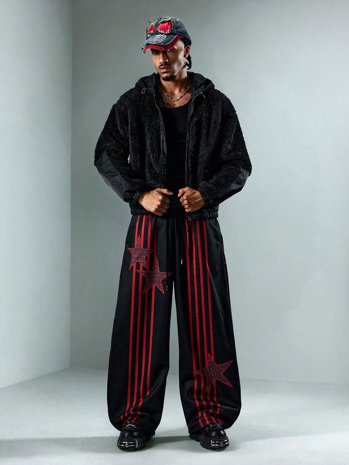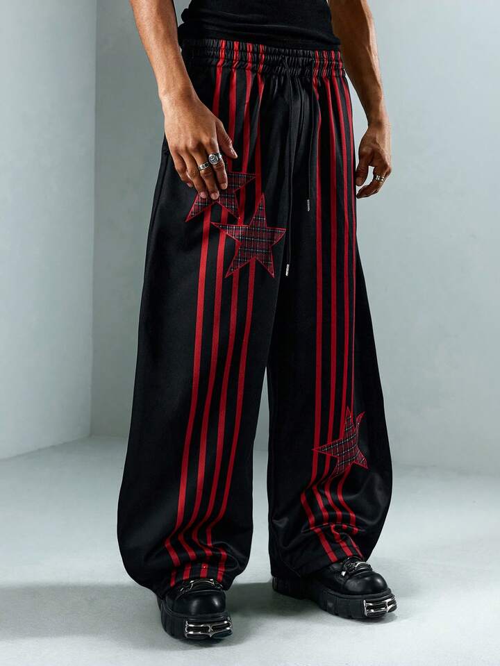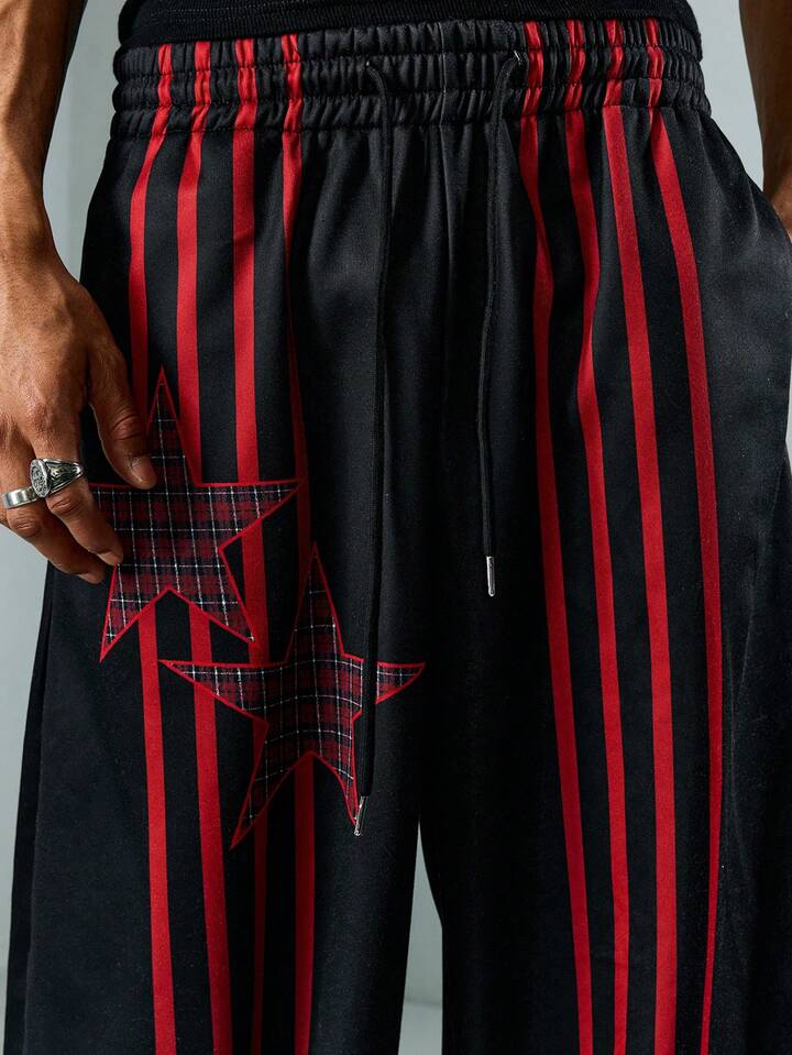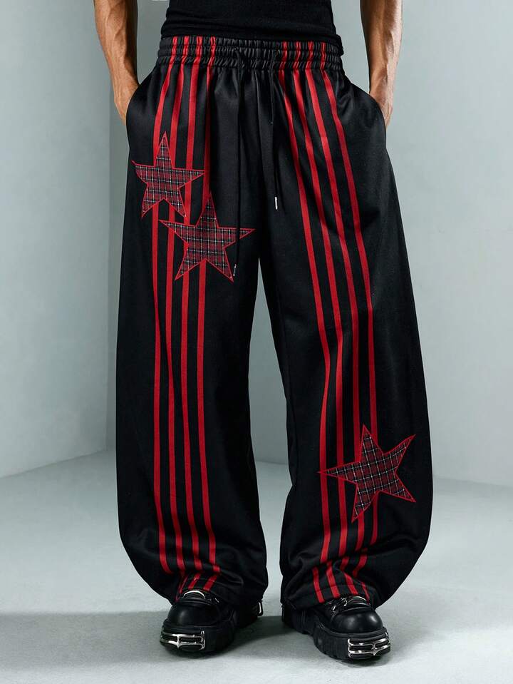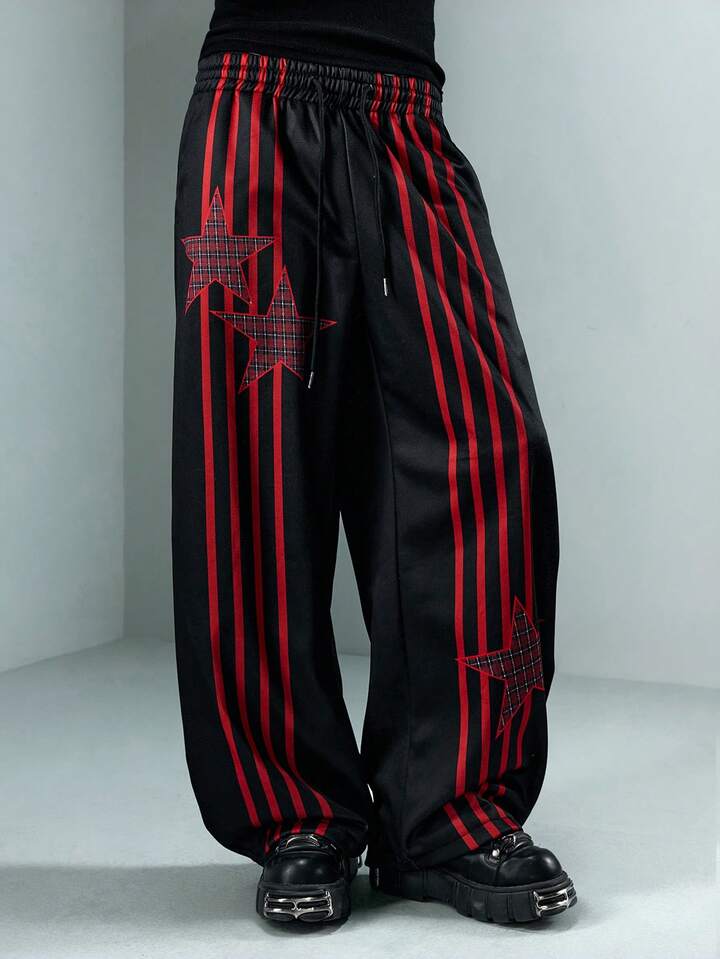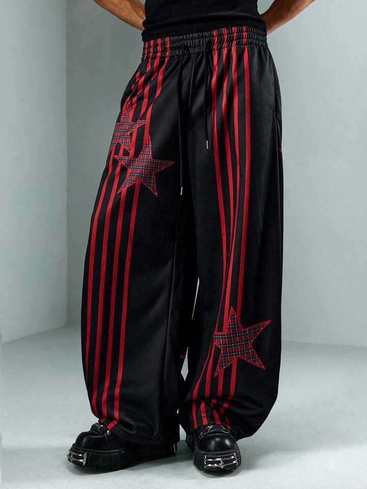 Street Life Pantaloni della tuta casual larghi da uomo con vita con coulisse e stampa a stelle a cinque punte a righe