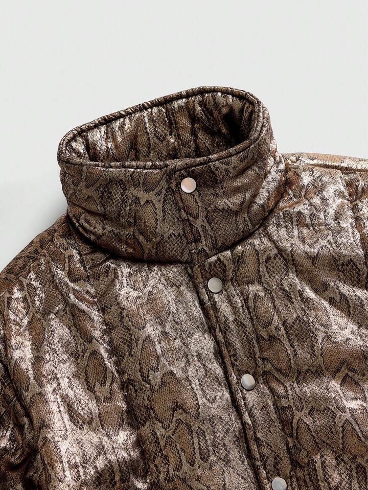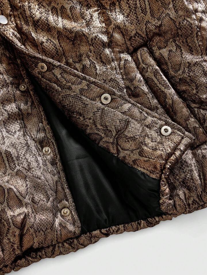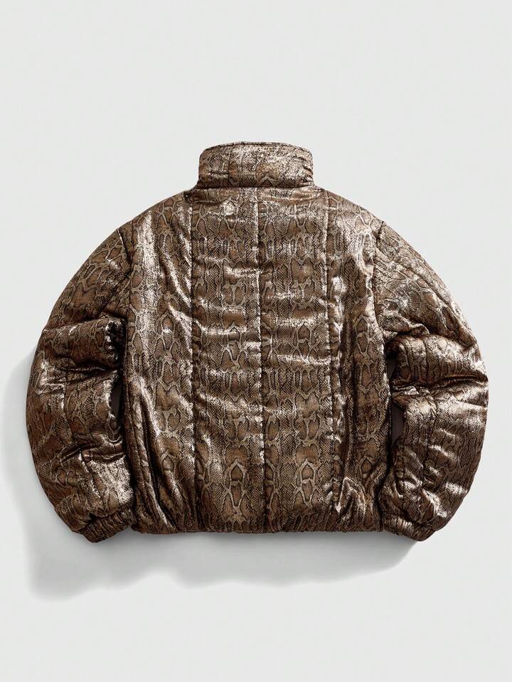 Street Life Cappotto imbottito da uomo con collo alla coreana, maniche a goccia e manica lunga, con motivo a pelle di serpente alla moda e caldo, adatto per l'inverno