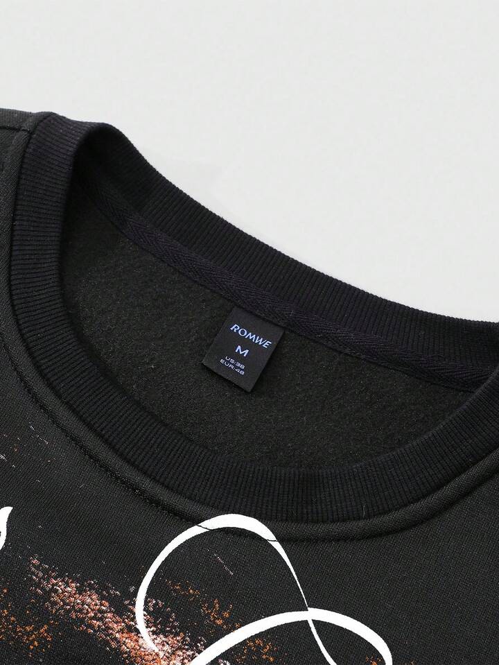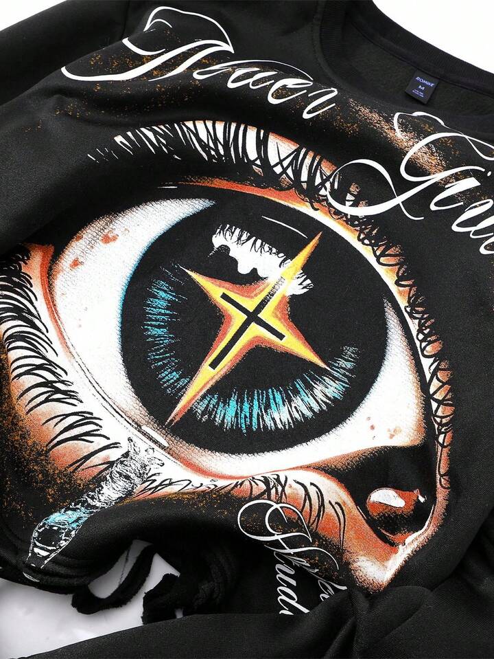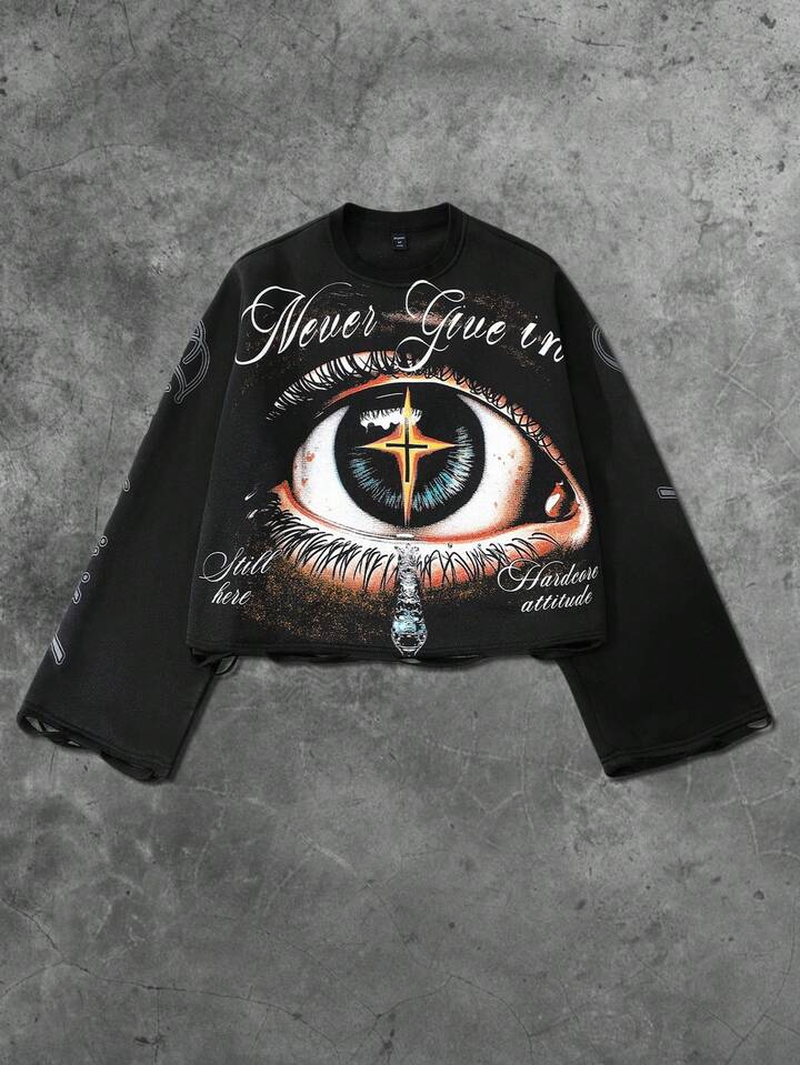 Street Life Felpa girocollo a maniche lunghe con stampa occhi e effetto vissuto, autunno inverno, da uomo