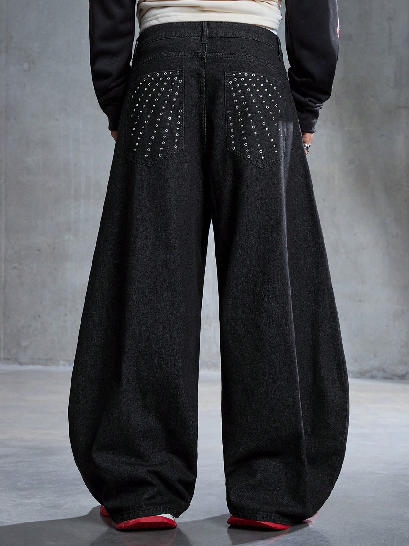 Street Life Jeans casual da uomo con occhielli in metallo, tasche inclinate e gamba ampia e morbida
