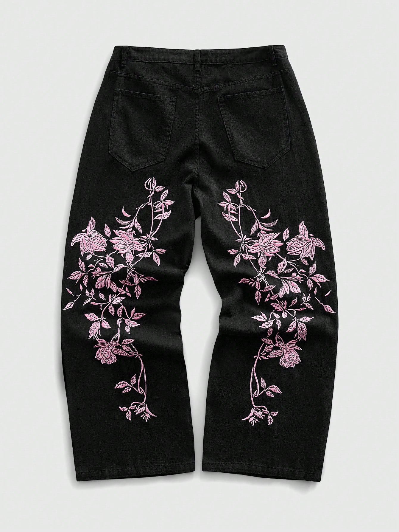 Street Life Jeans di moda da uomo con motivo floreale e design curvo