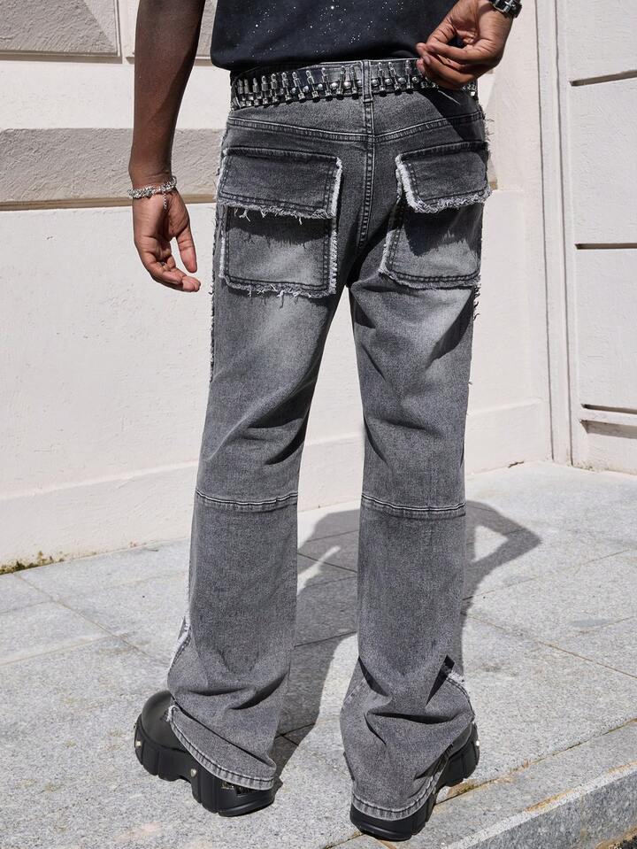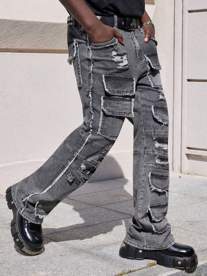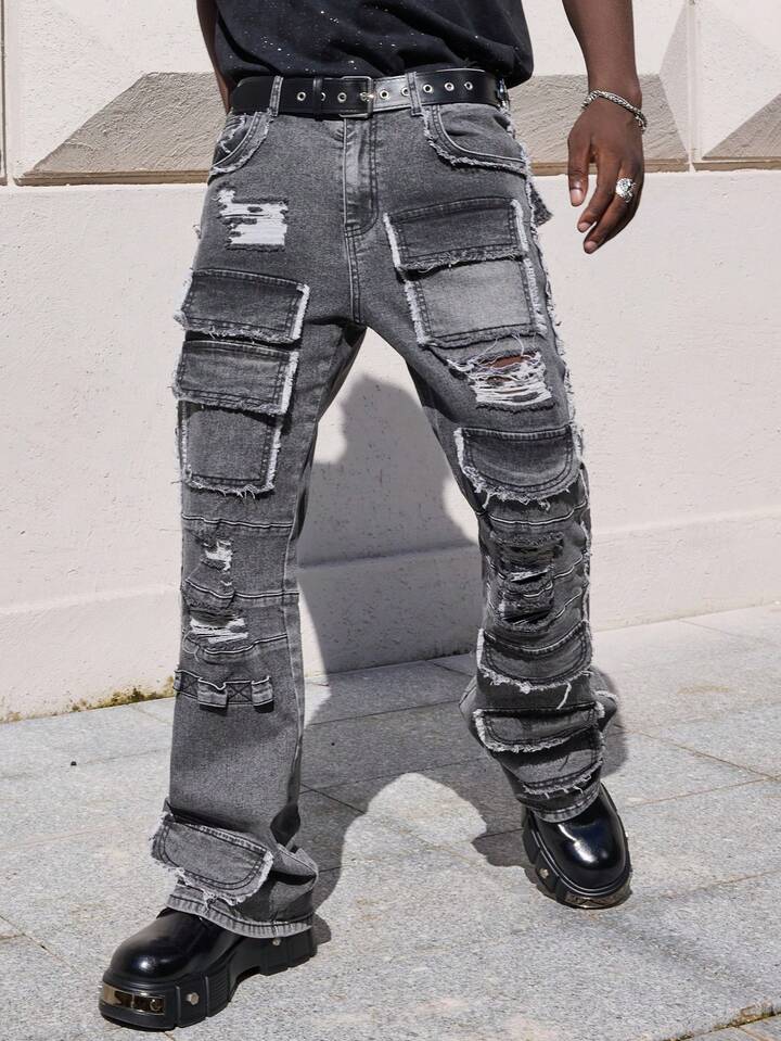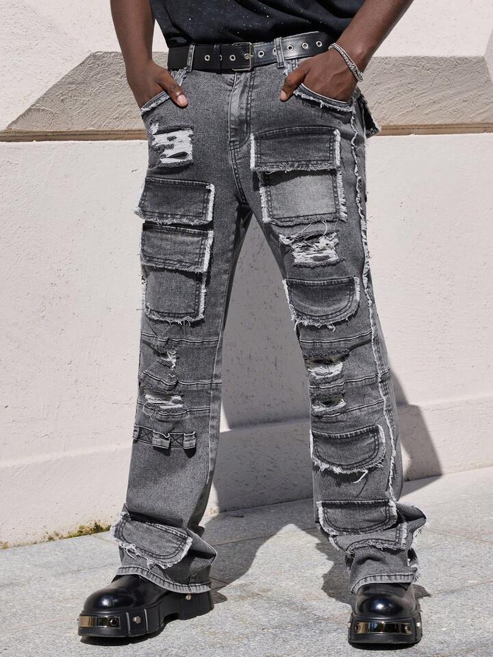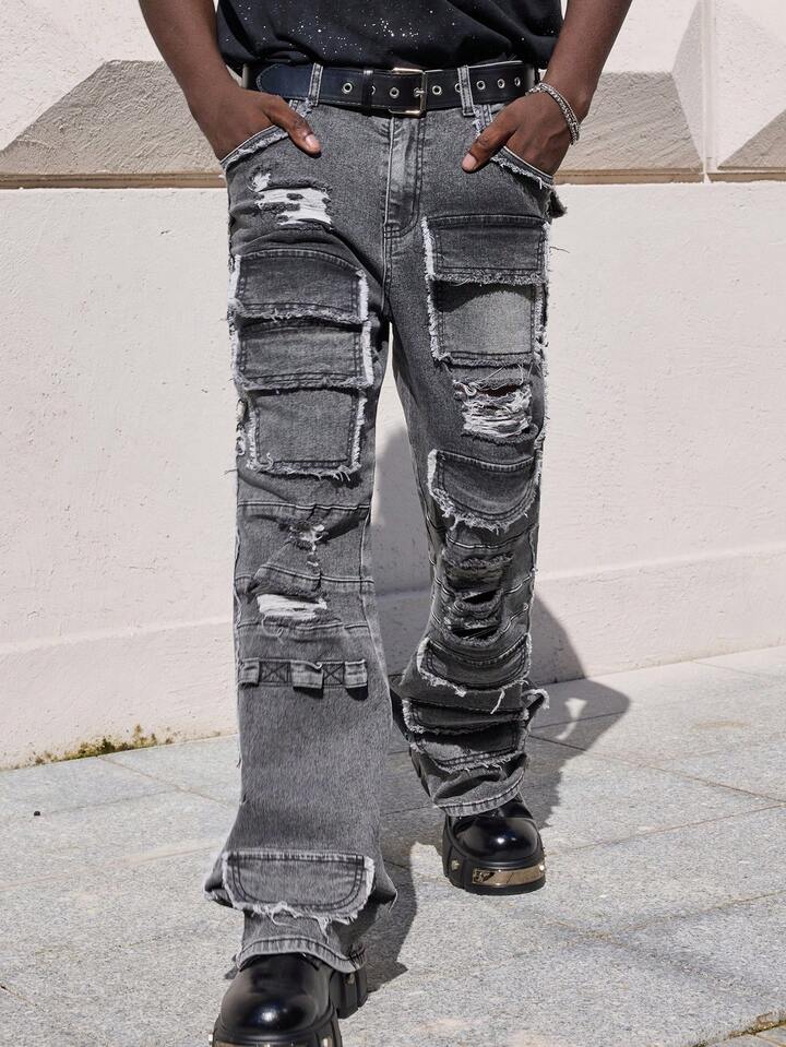 Street Life Jeans casual slim fit in denim con tasche sfilacciate da uomo