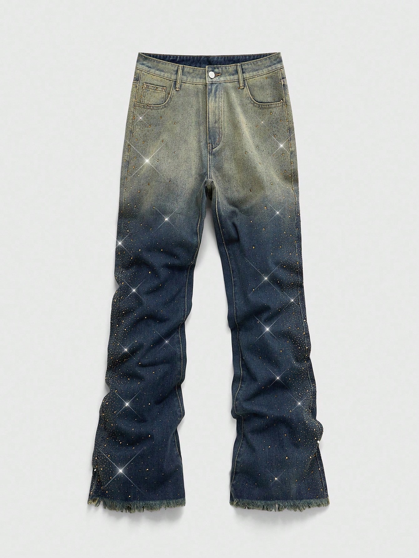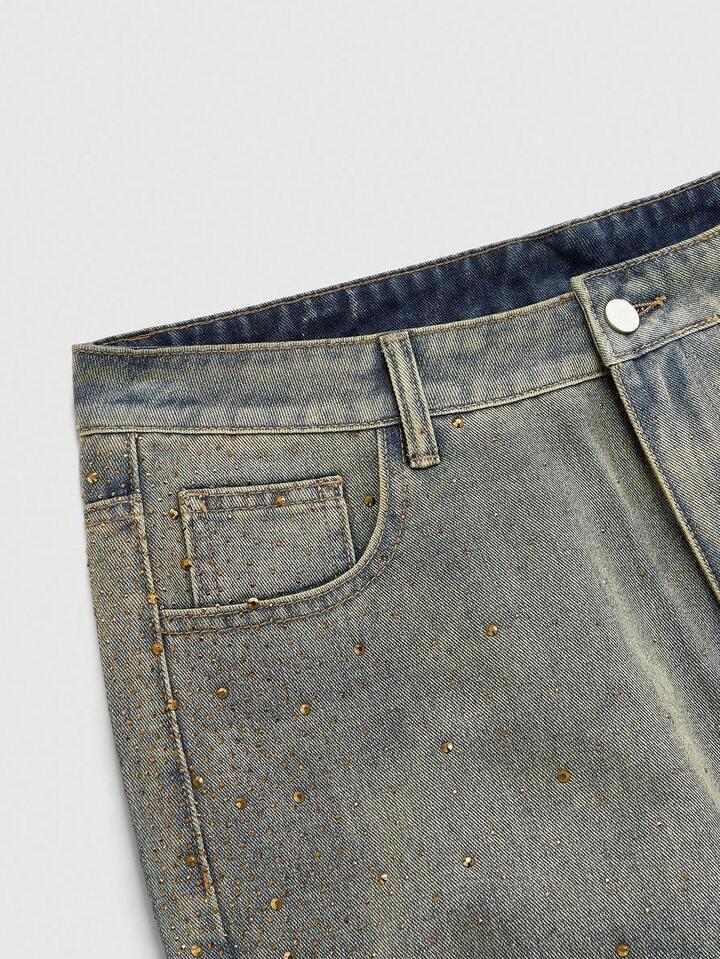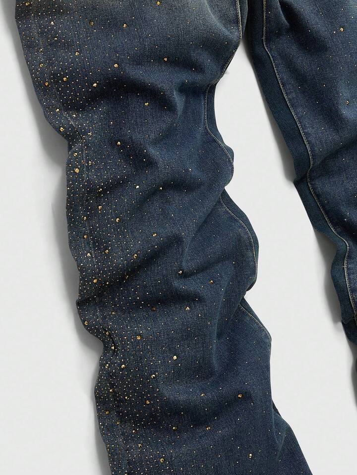 Street Life Jeans di moda da uomo con tasche in denim con strass e orlo sfrangiato