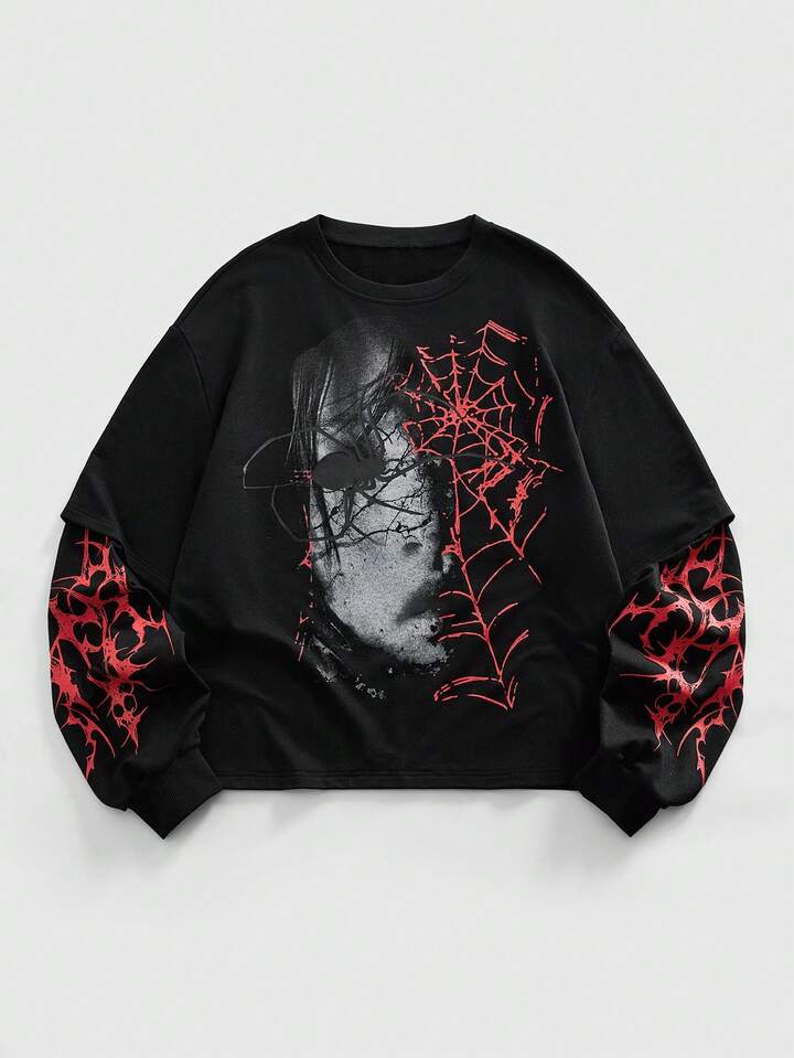 Street Life Maglietta da uomo a maniche lunghe con stampa scura 2 in 1