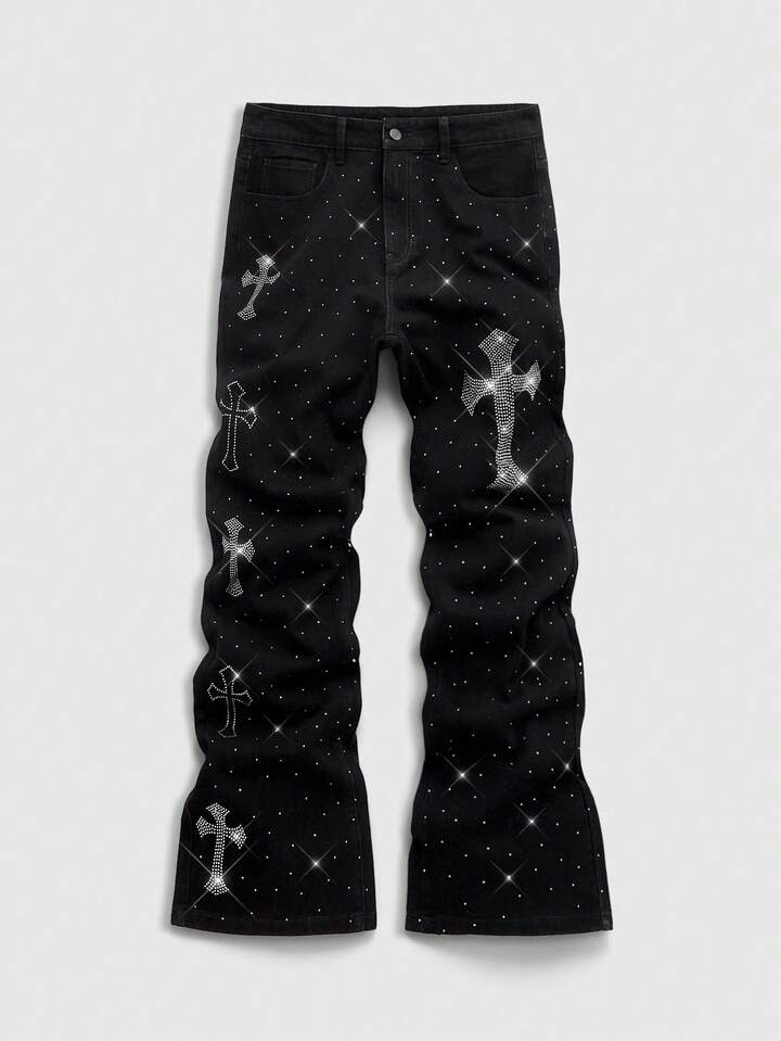 Street Life Jeans di moda da uomo con applicazioni di strass a forma di croce