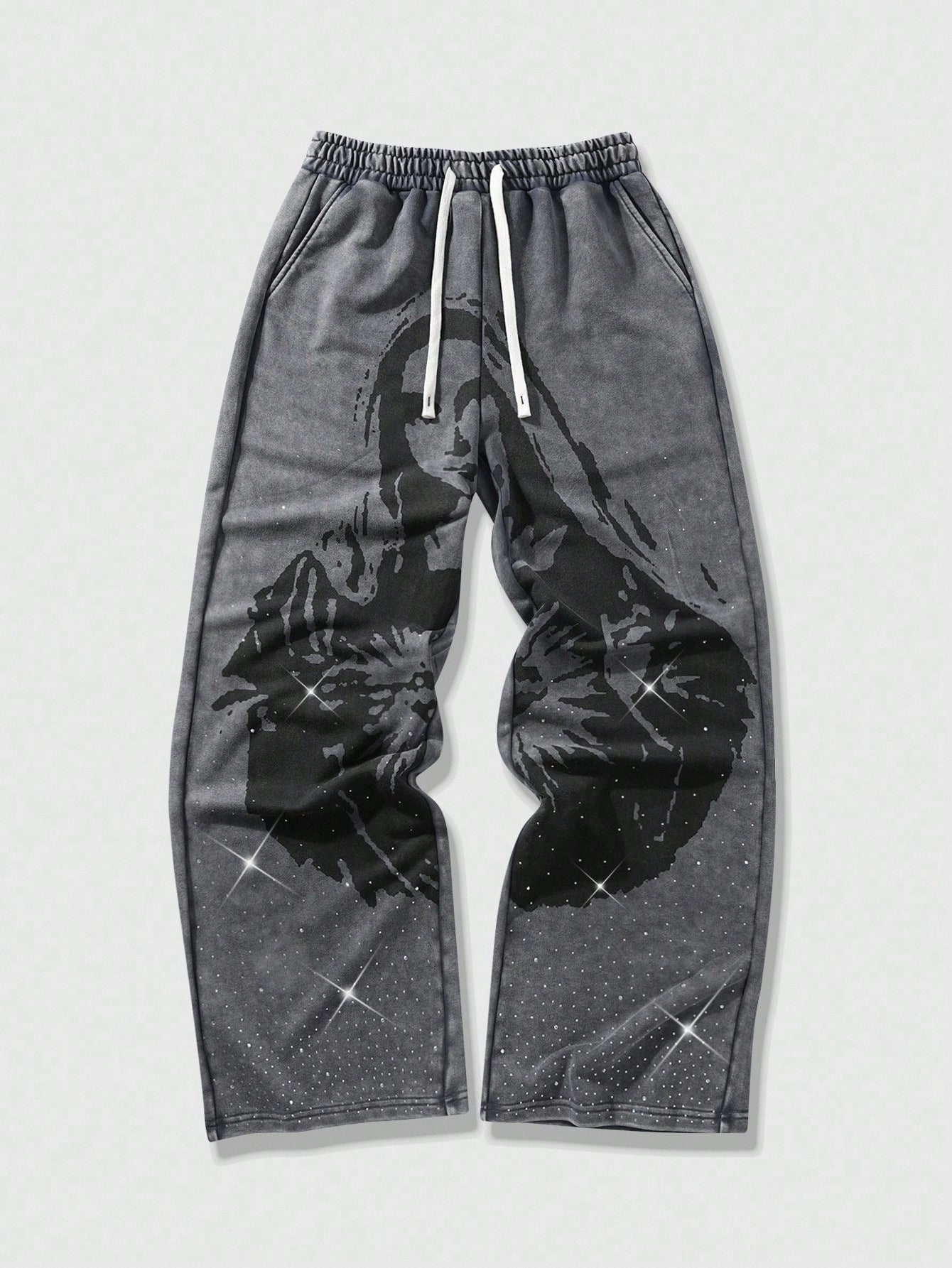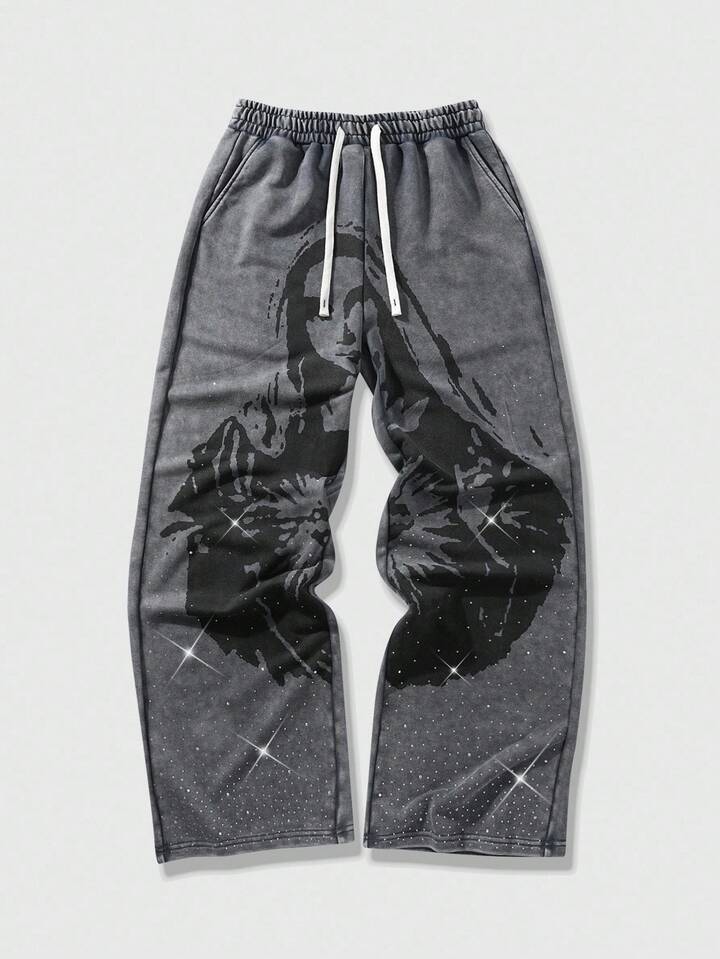 Street Life Pantaloni della tuta da uomo alla moda con stampa della Vergine Maria e strass